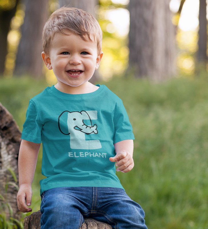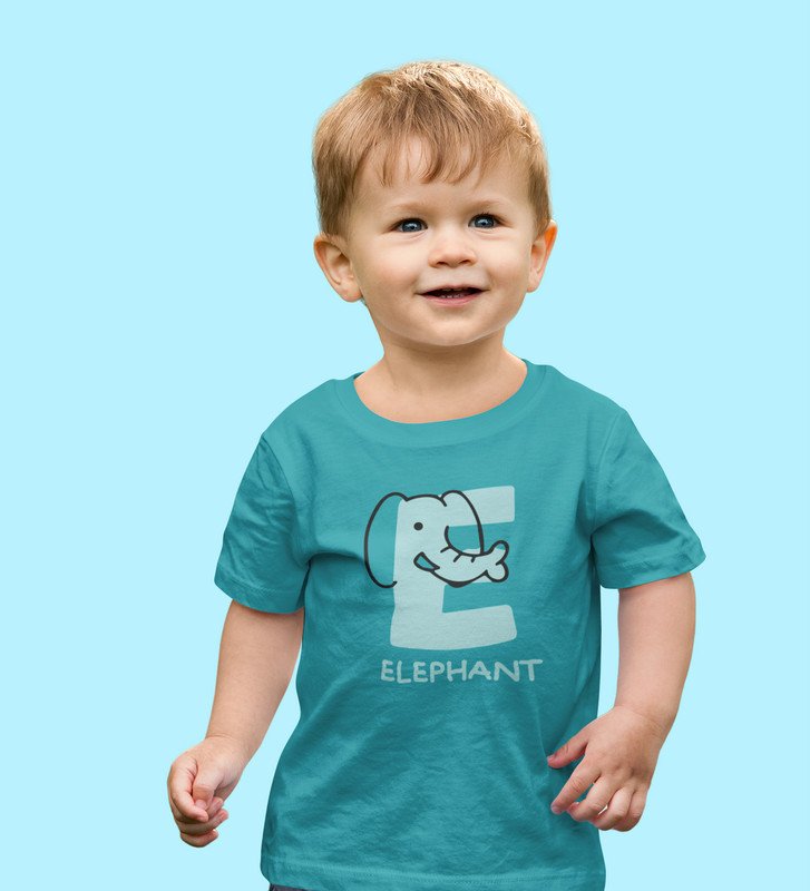 Elephantastic, Boys Round Neck Blended Cotton tshirt (teal)