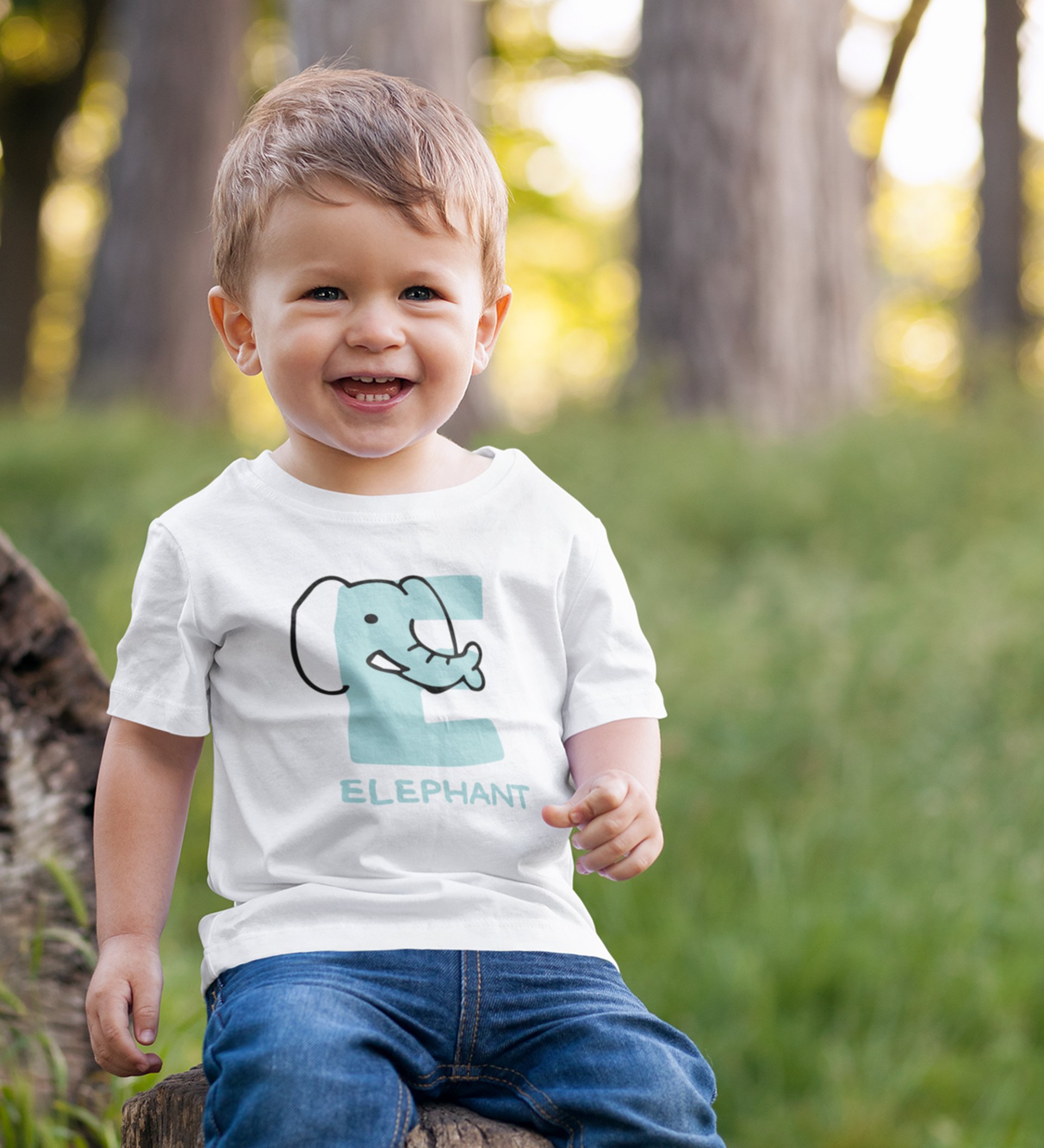 Elephantastic, Boys Round Neck Blended Cotton tshirt (white)