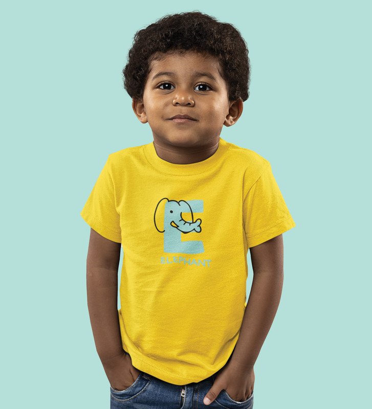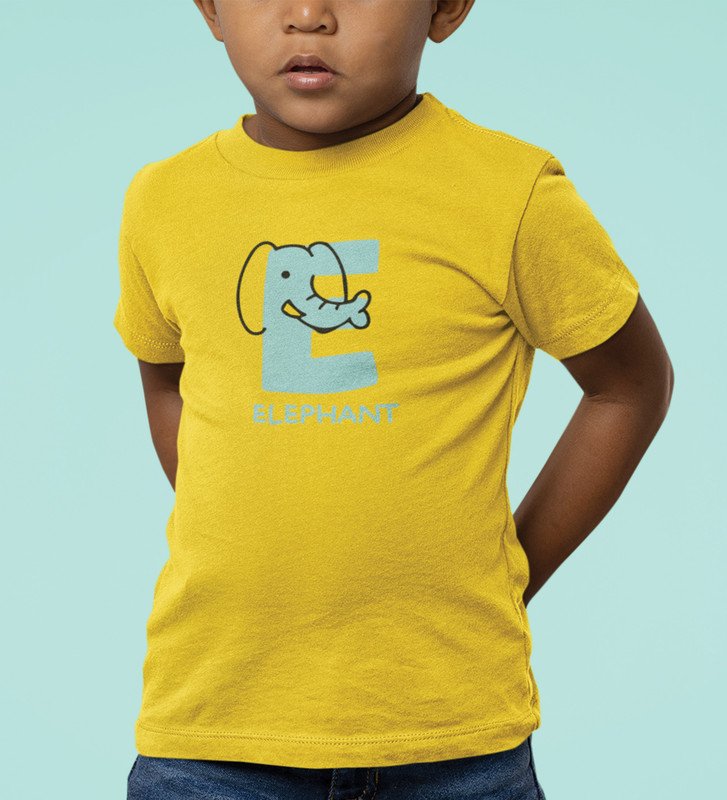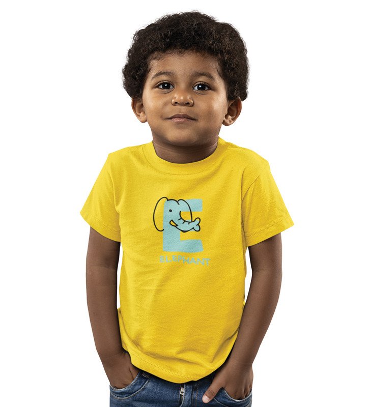 Elephantastic, Boys Round Neck Blended Cotton Tshirt (Yellow)