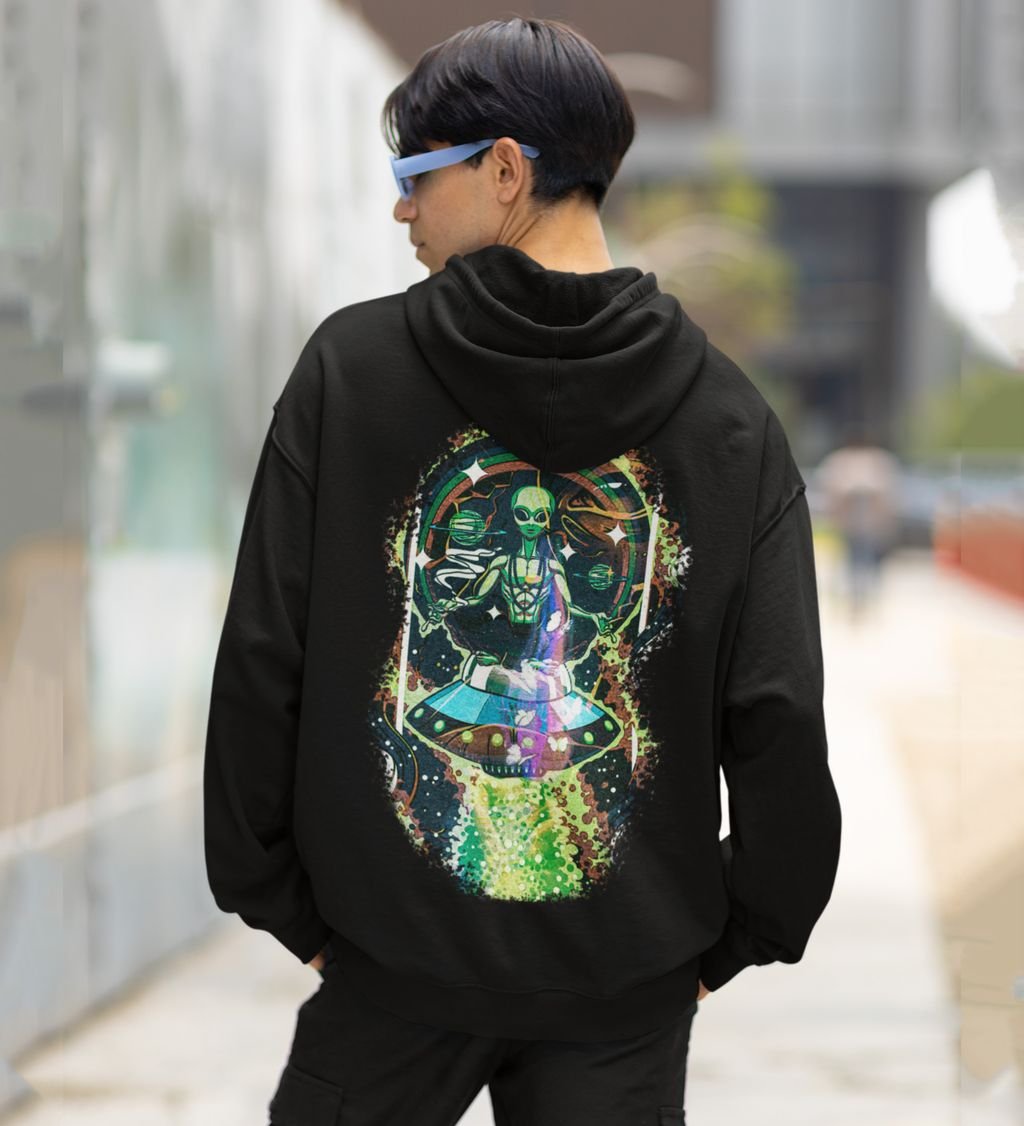 Elevate the Mind Simple Living High Thinking Black Cotton Printed Hoodie For Men
