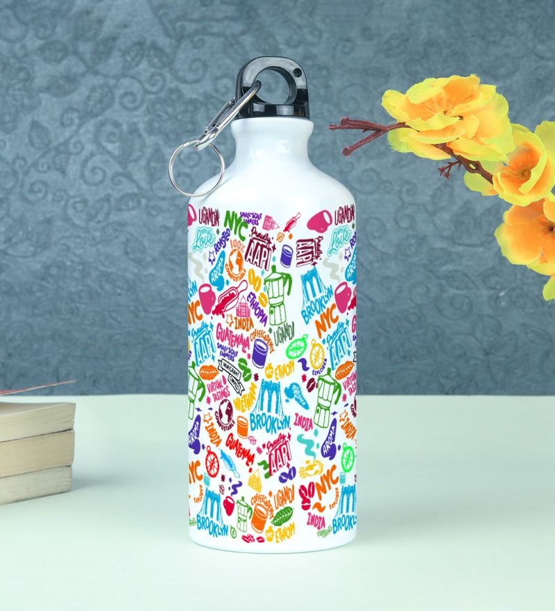 Elevate Your Sip with Playful Colorful Vector Designs on Aluminium Water Bottle 600ml