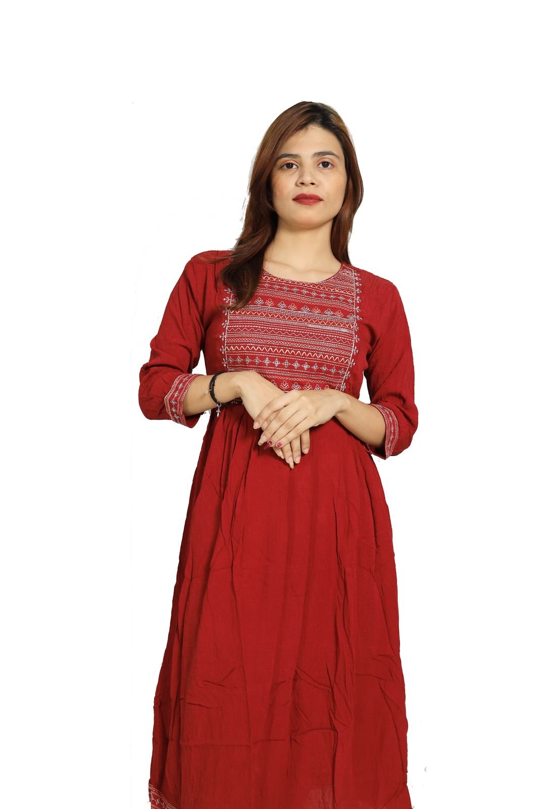 Curved straight lines embroided straight Kurti for Womens/ girls (Red)- Made up of Rayon and designed for you plesant and comfy