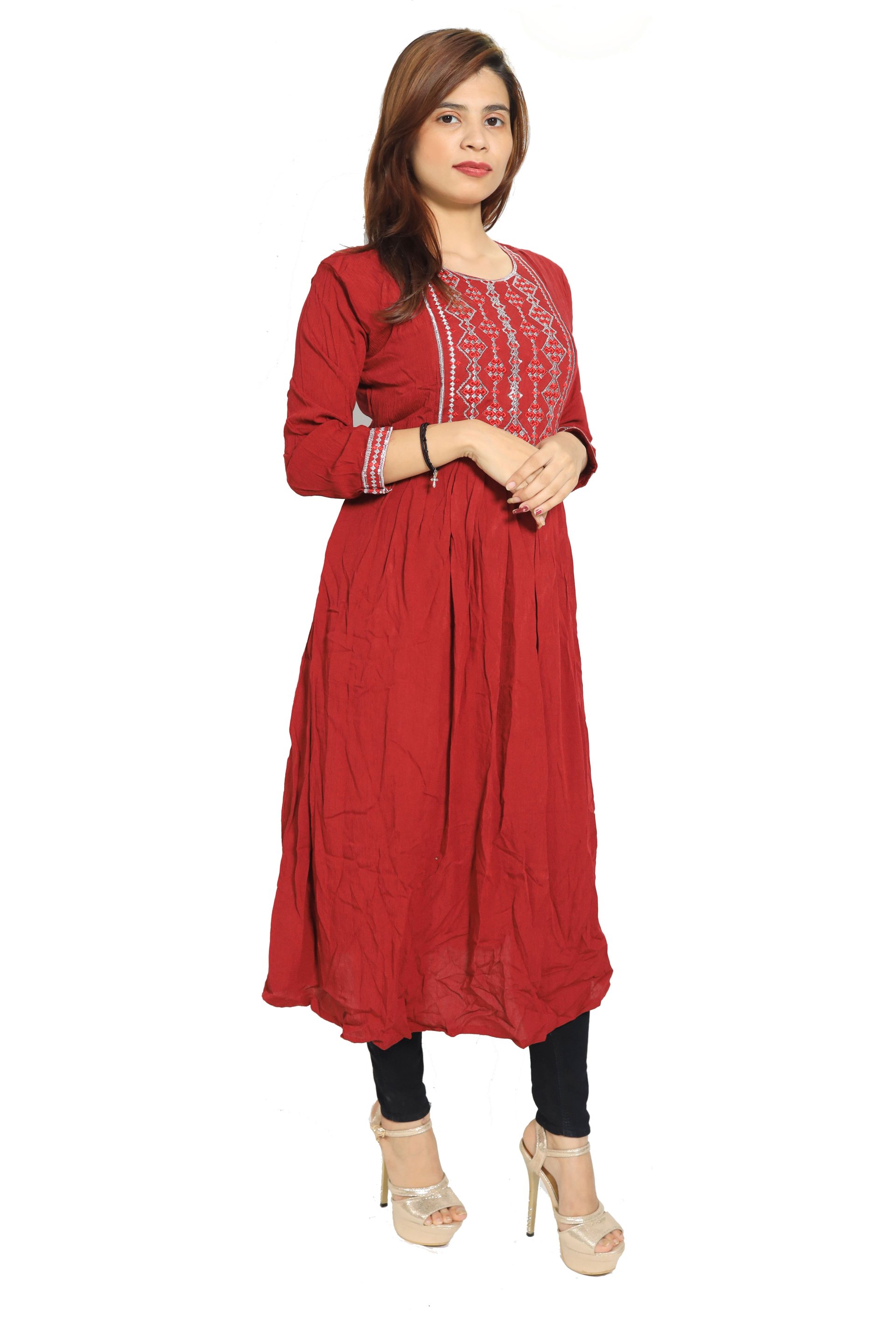 Women loves to wear kurtis of any age group. The fashion is not only limited upto married women but also to the teenagers. For any traditional day, poojas or any religious program, kurtis are mostly used to wear by ladies which gives positive, ritualistic and ceremonial vibes. The recognization of kurtis is still going on in 21st century. So, We have brought you a full collection of embroidery kurtis which is made of Rayon and designed for you plesant and comfy.