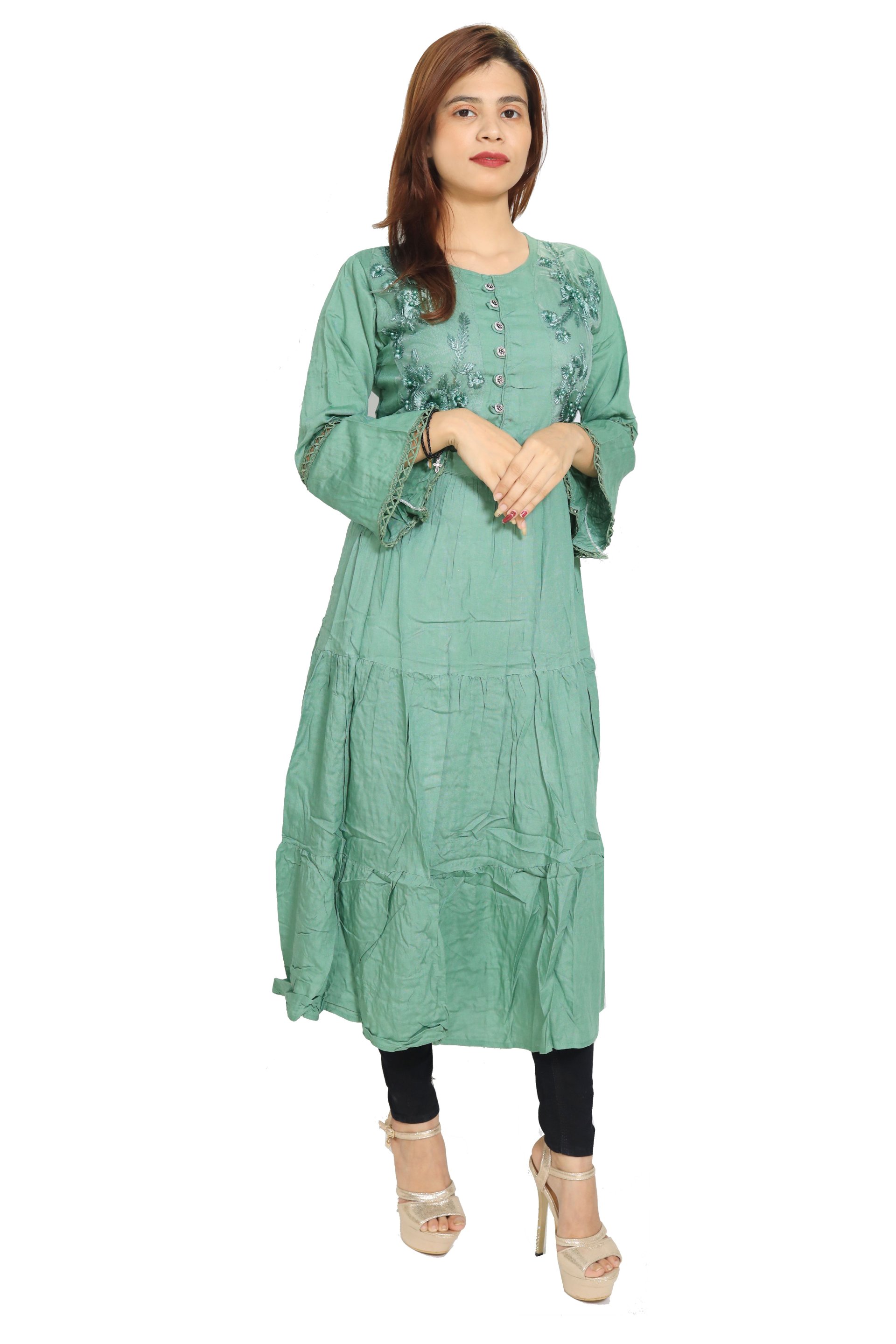 Green flower embroided straight Kurti for Womens/ girls (green kurti) - Made up of Rayon and designed for you plesant and comfy