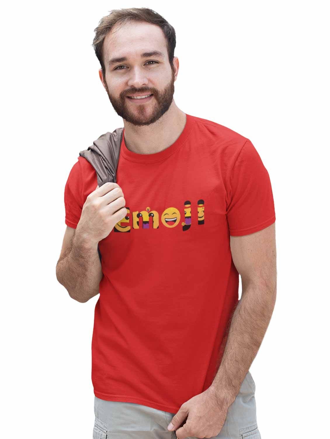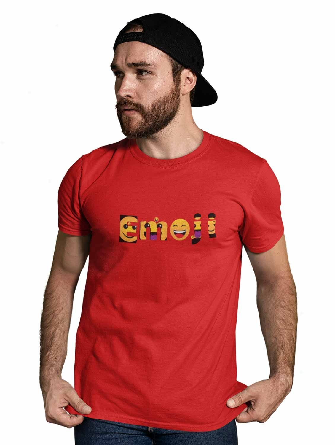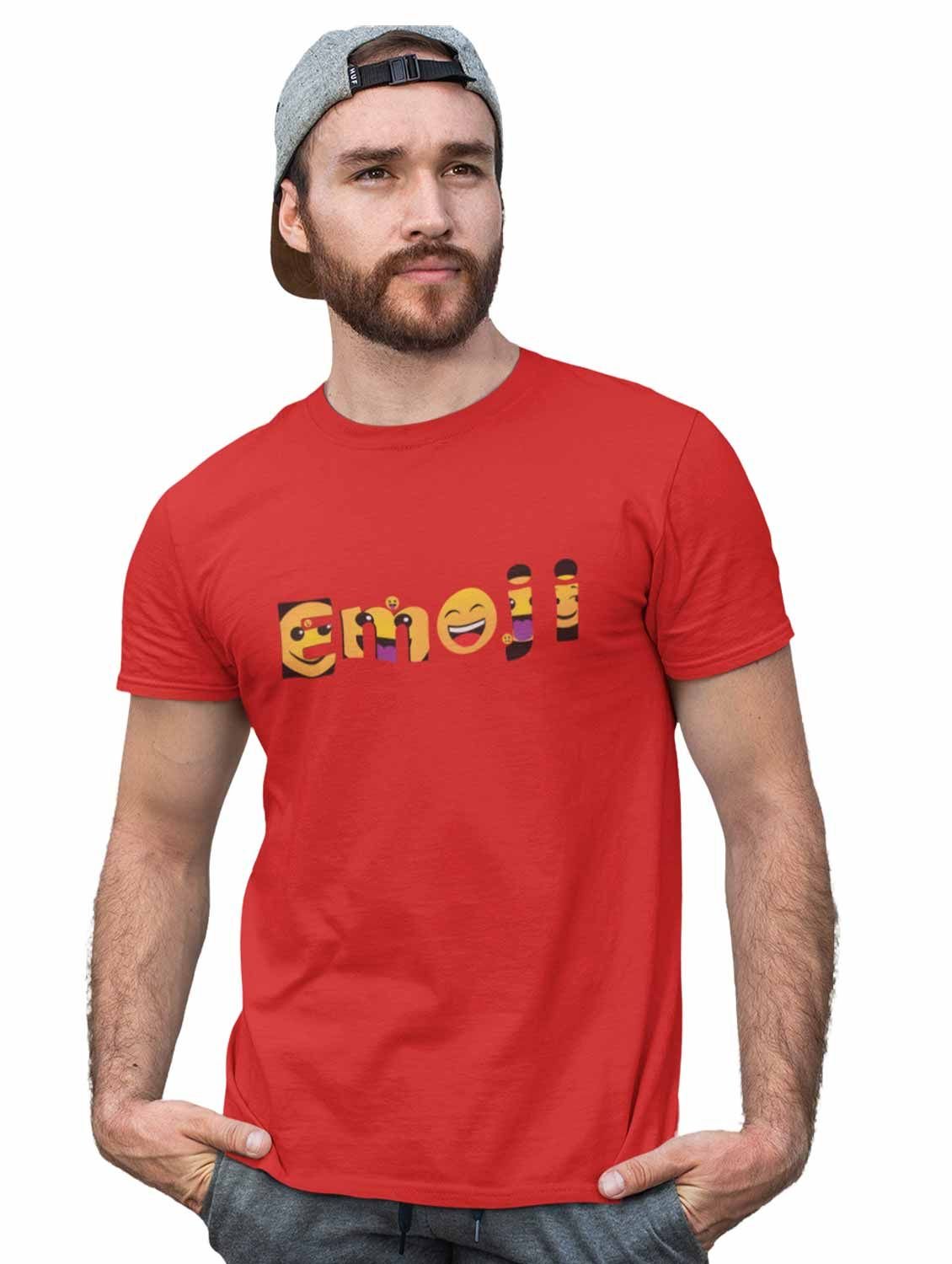 Emoji Pattern in Alphabets Printed T-shirt (Red) - Clothes for Emoji Lovers - Foremost Gifting Material for Your Friends and Close Ones