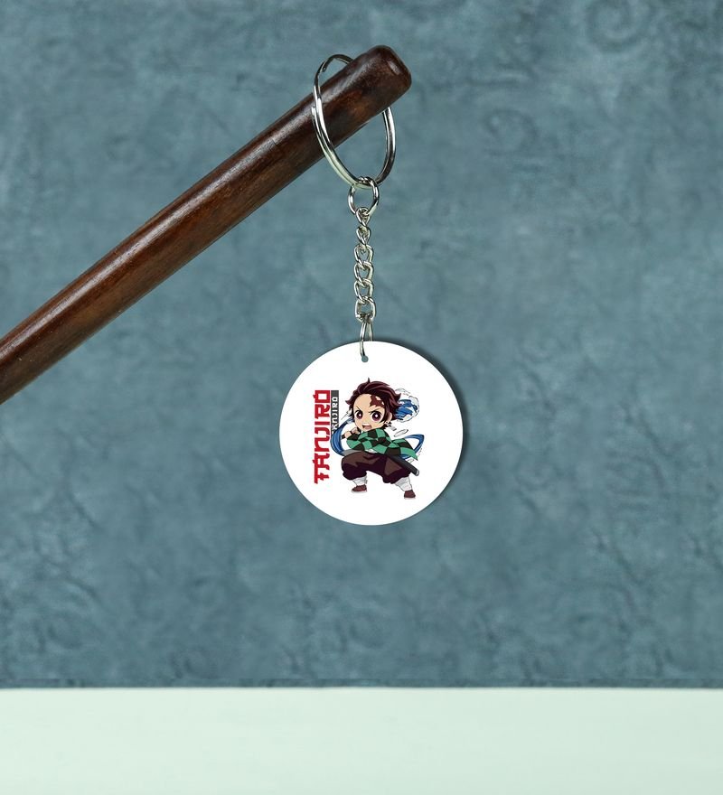Energetic Anime Style Boy Warrior Printed Round Keychain Pack of 2