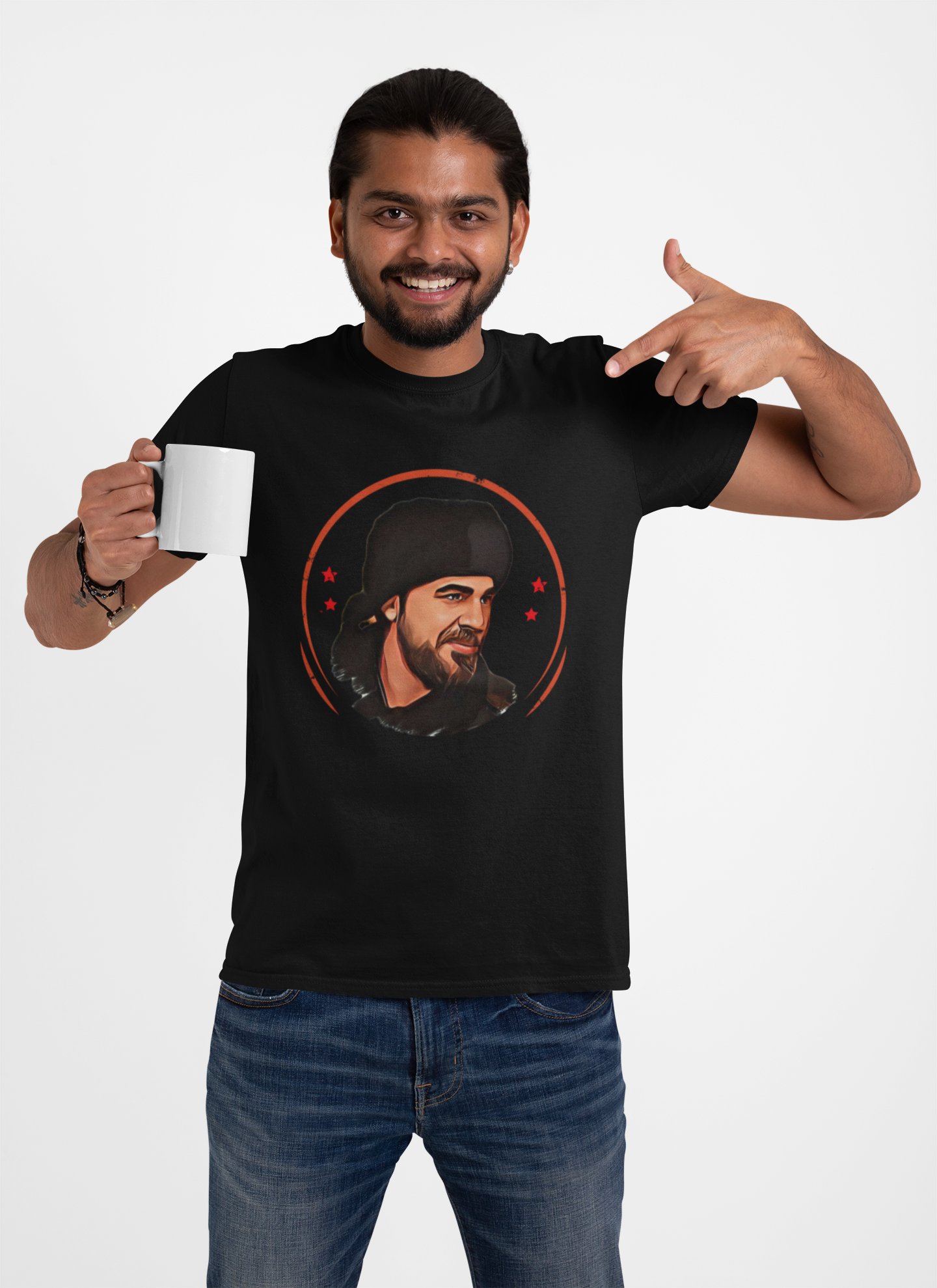 Ertgrul ghazzi - Character Illustration - Black - The Ertugrul Ghazi - 100% cotton t-shirt for Men with soft feel and a stylish cut