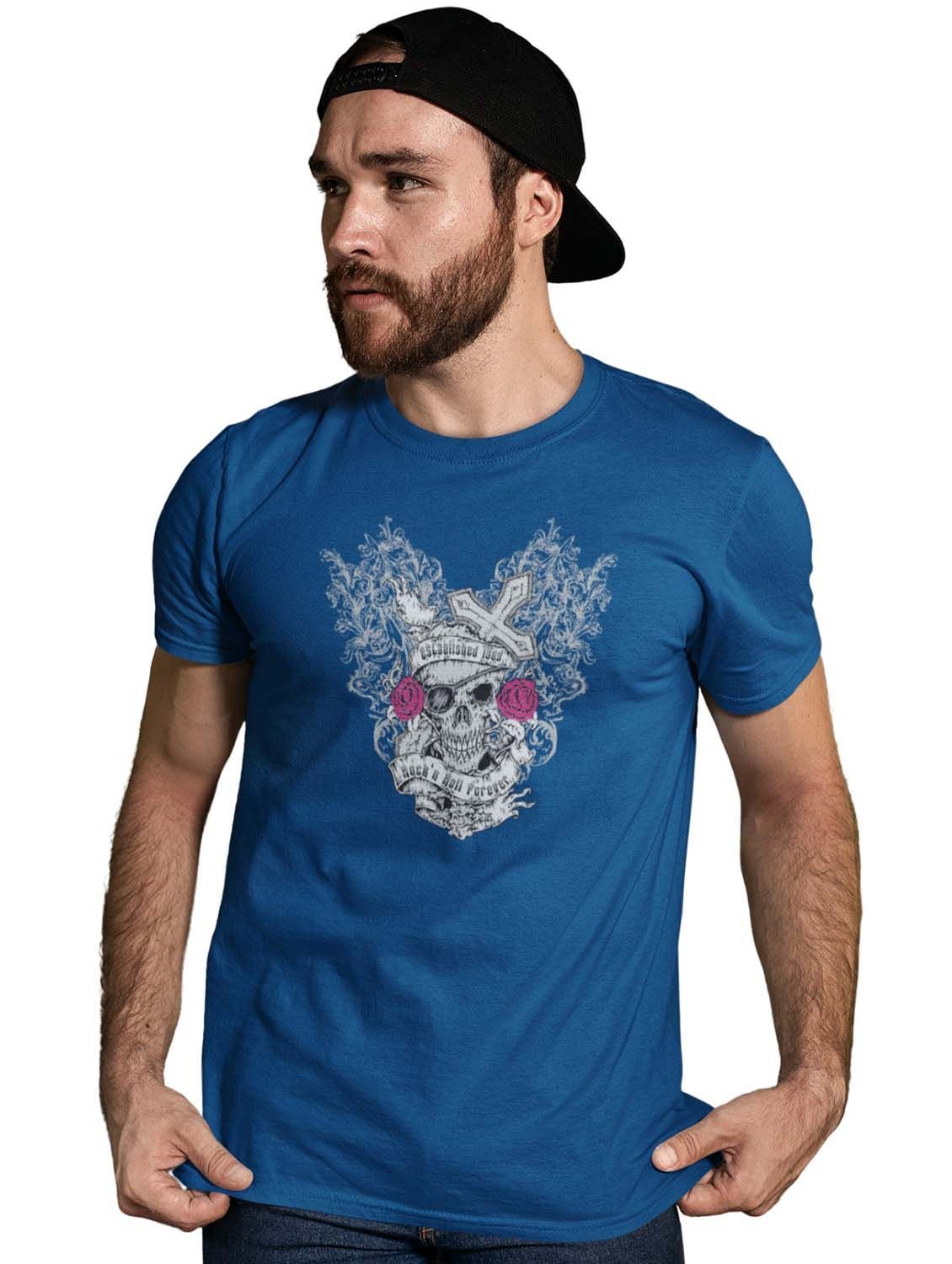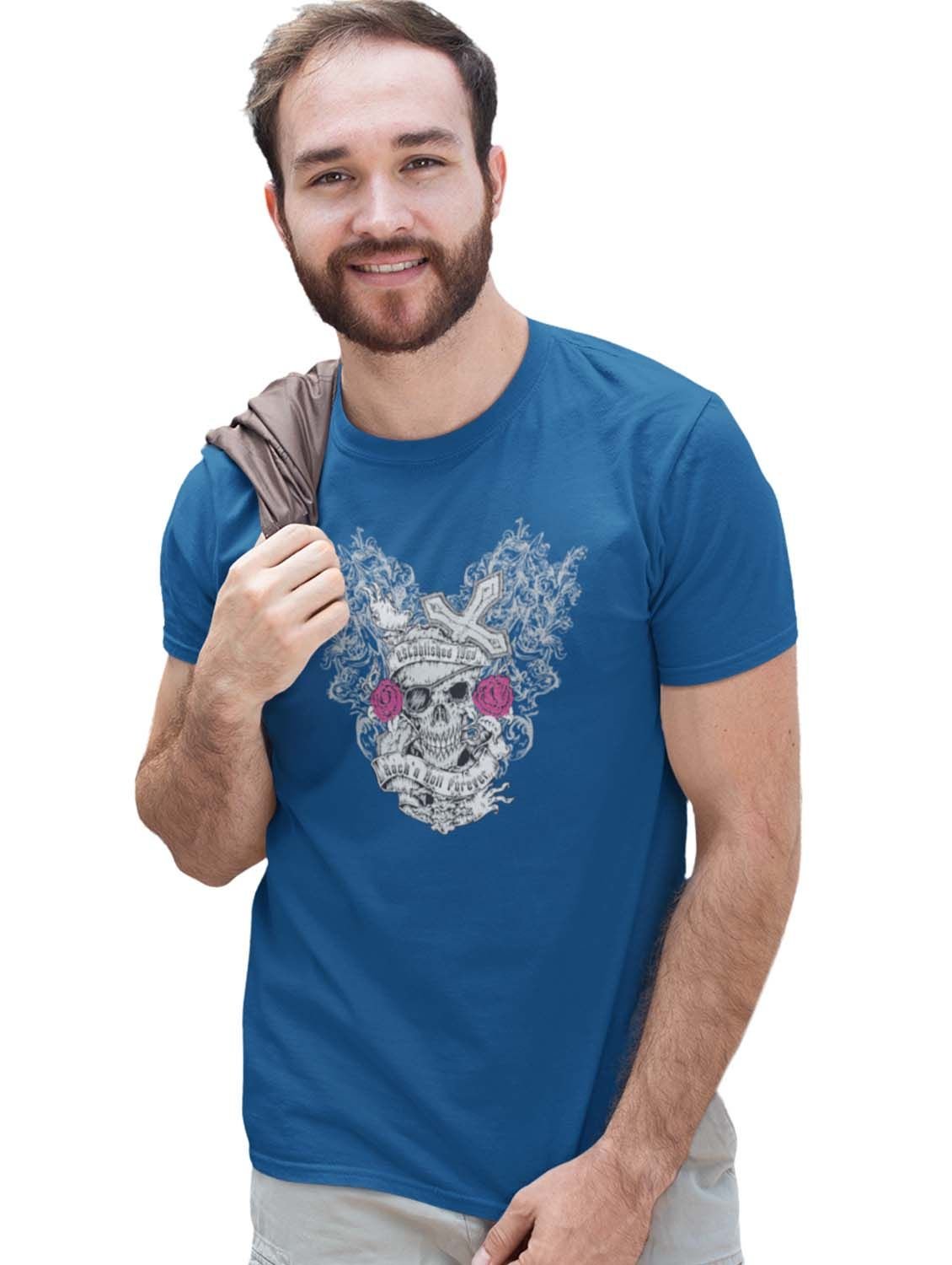 The Knight Blue Round Neck Cotton Half Sleeved T-Shirt with Printed Graphics