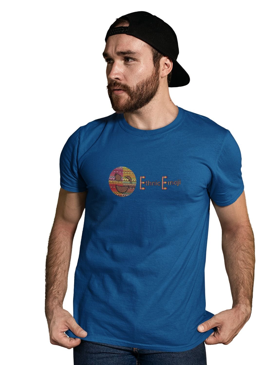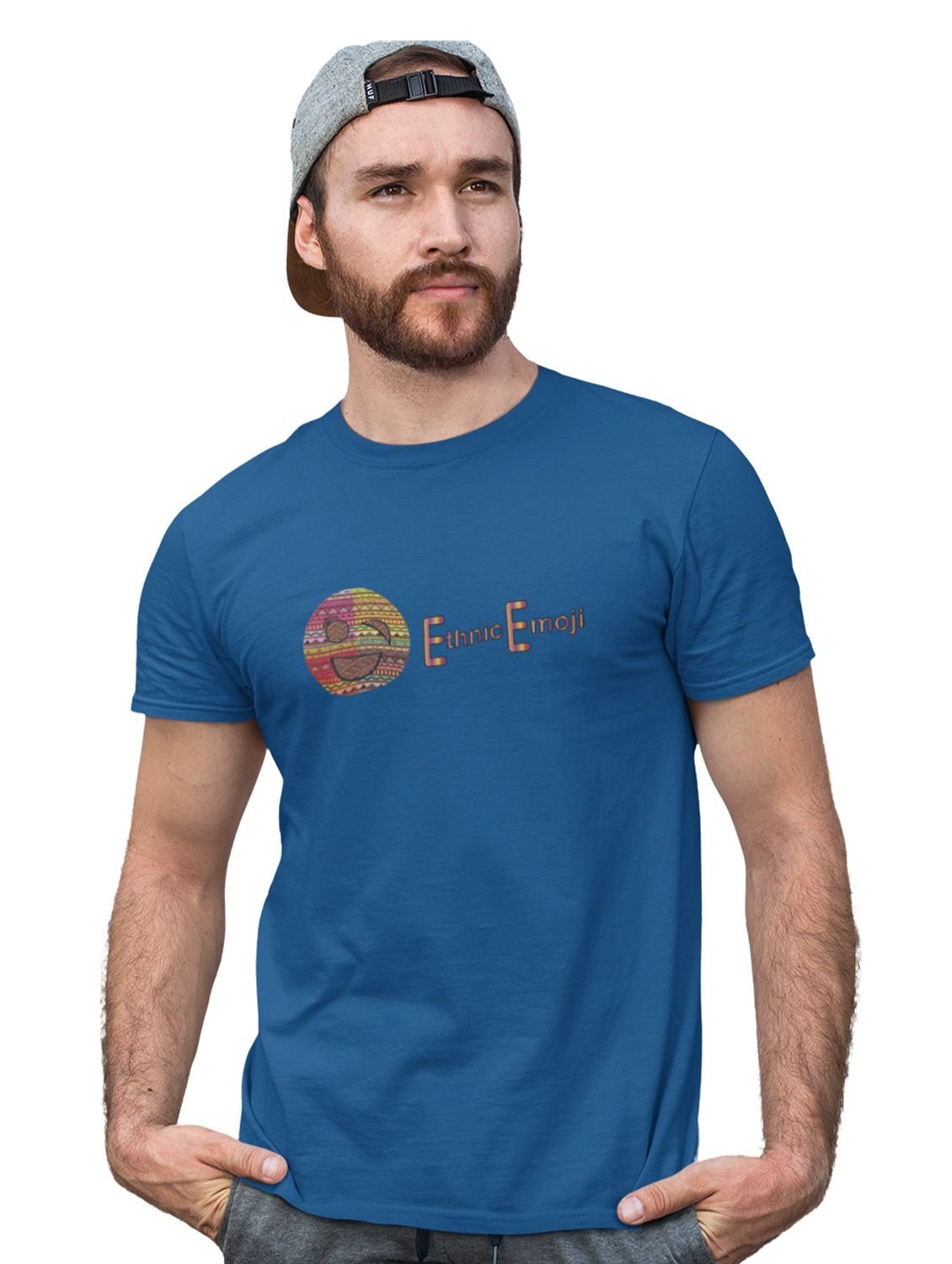 Ethnic Emoji with Patterns Printed T-shirt (Blue) - Clothes for Emoji Lovers - Suitable for Fun Events - Foremost Gifting Material for Your Friends and Close Ones