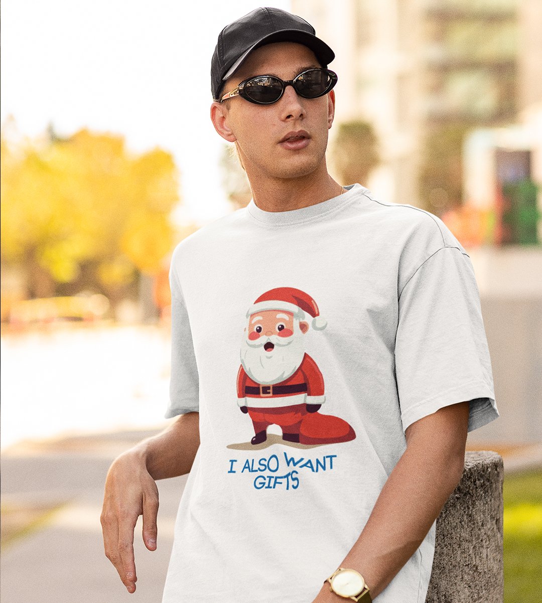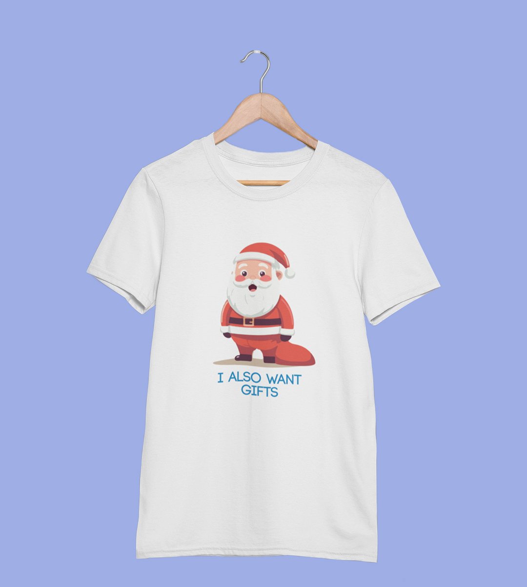 Even Santa Wants Gift: Cute Printed T-shirt (White) Perfect Gift For Boys Girls