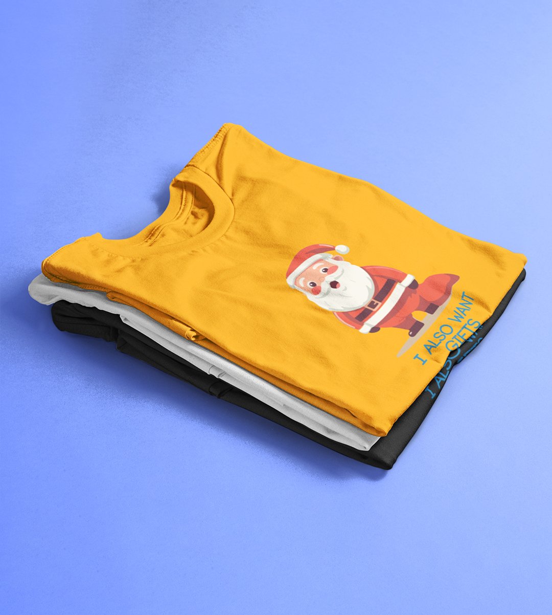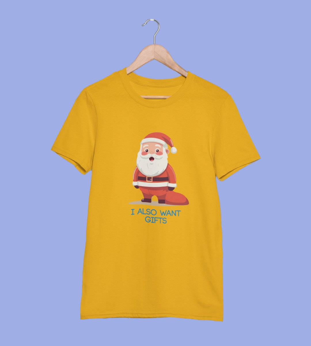 Even Santa Wants Gift: Cute Printed T-shirt (Yellow) Perfect Gift For Boys Girls