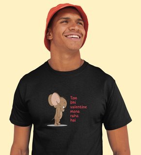 Even Tom Has A Valentine: (black) T-Shirt For Singles With Print