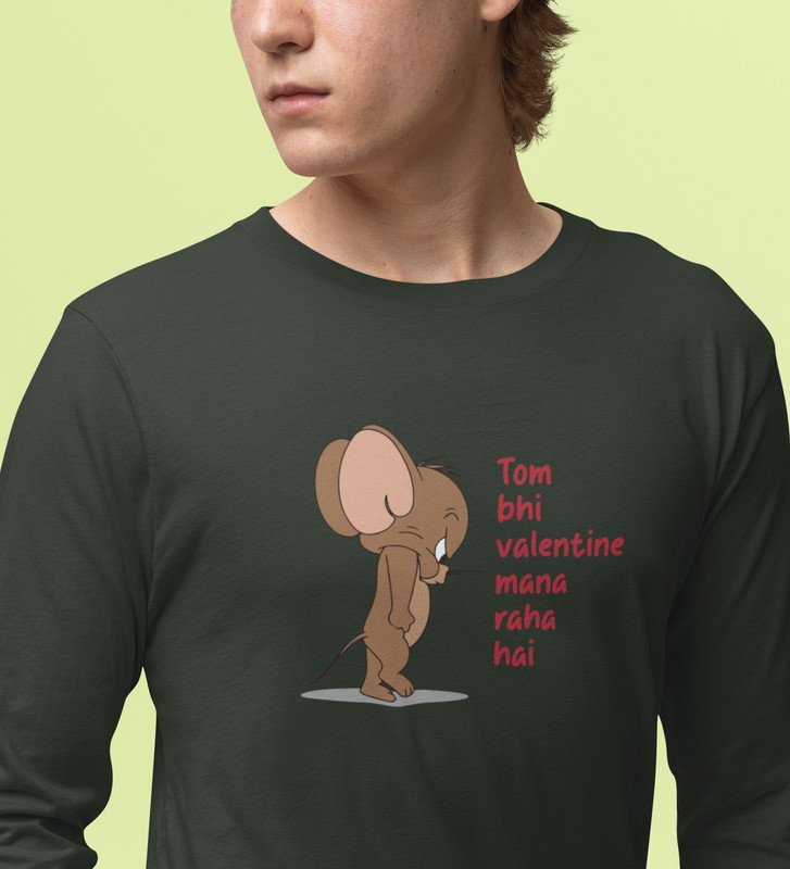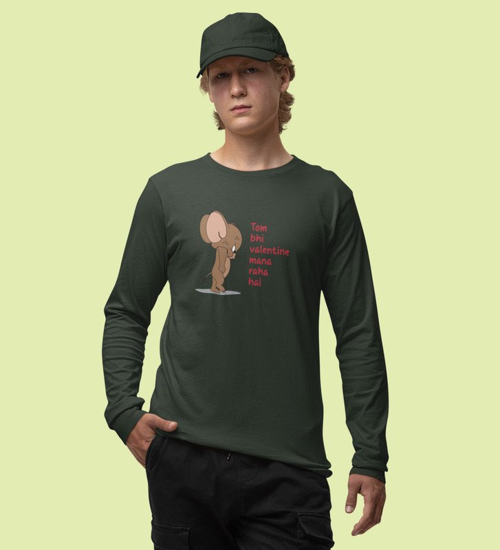 Even Tom Has A Valentine: (green) Full Sleeve T-Shirt For Singles With Print