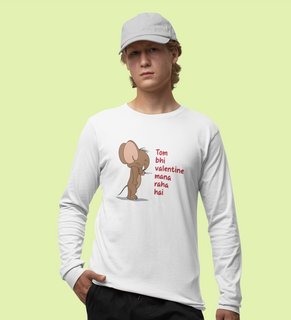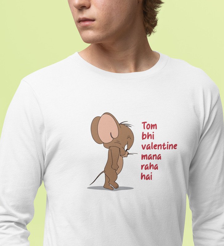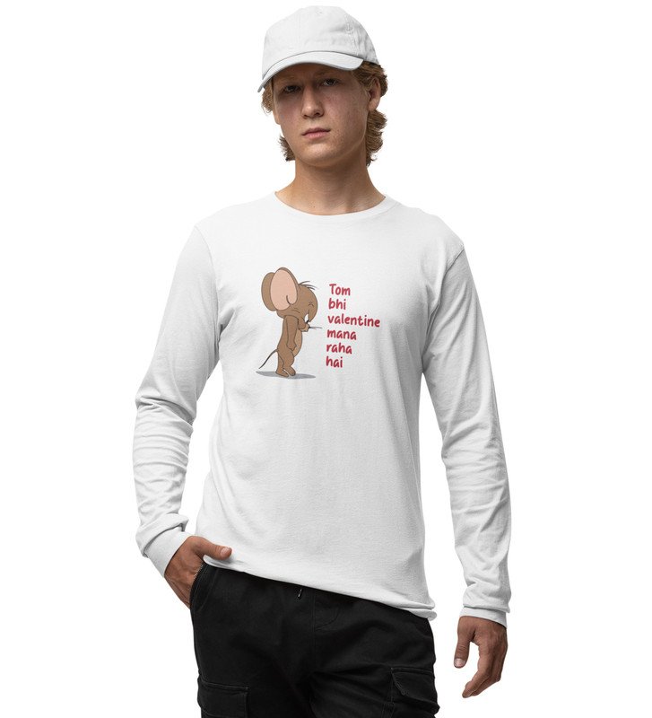Even Tom Has A Valentine: (white) Full Sleeve T-Shirt For Singles With Print