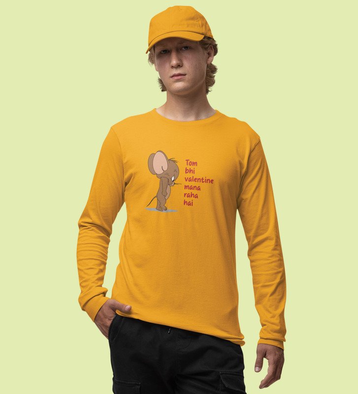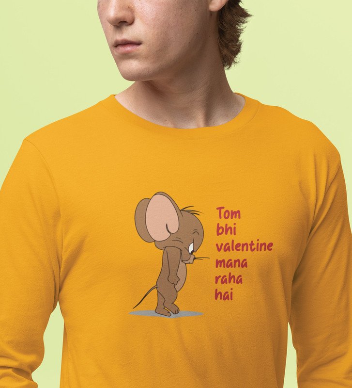 Even Tom Has A Valentine: (yellow) Full Sleeve T-Shirt For Singles With Print