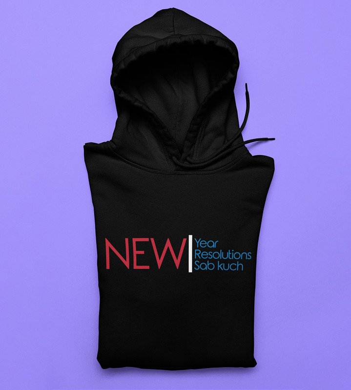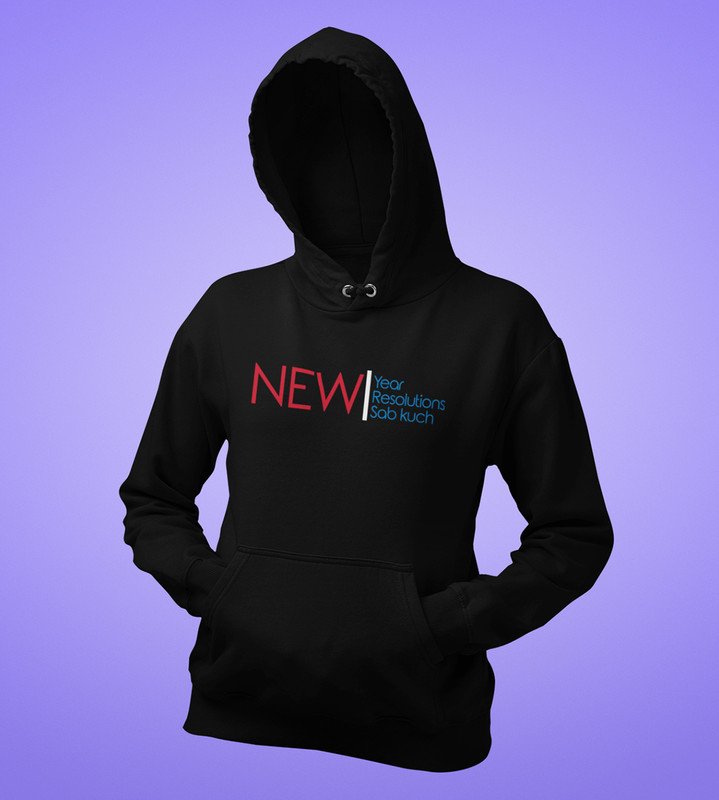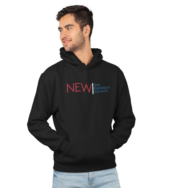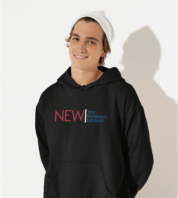 Everthing Is New, Black New Year Printed Hoodies For Mens