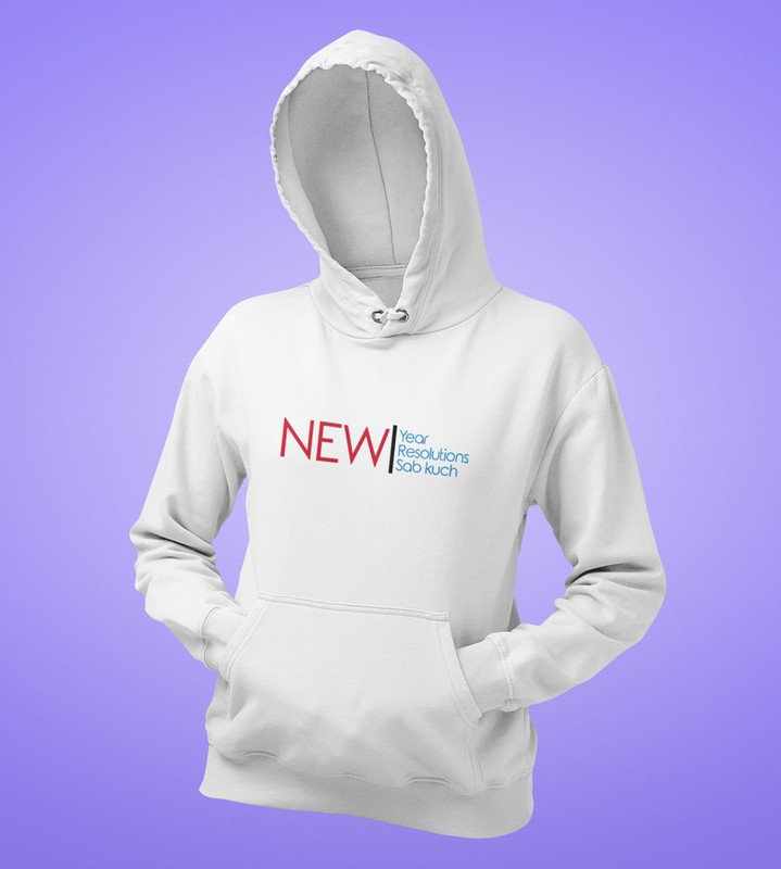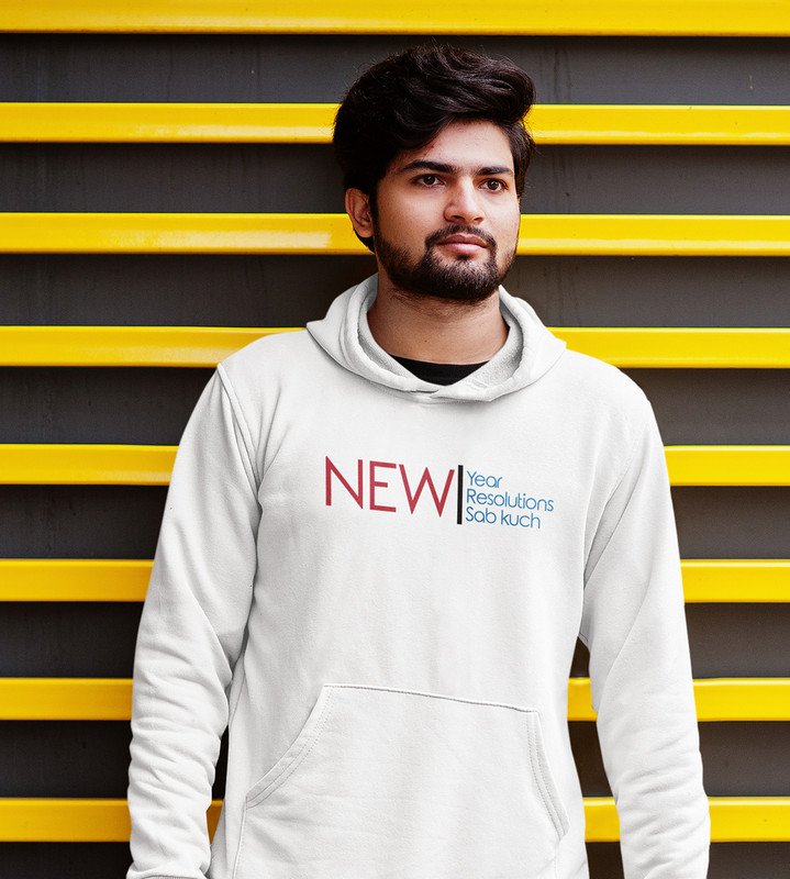 Everthing Is New, White New Year Printed Hoodies For Mens