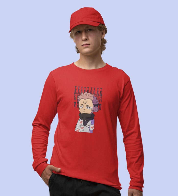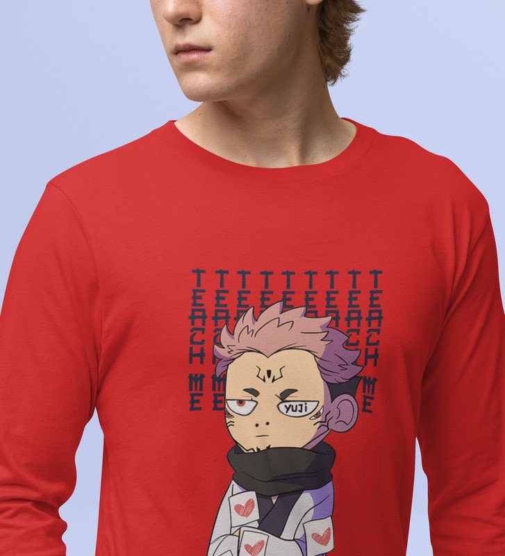 Evil Eye Itadori Cotton Red Printed Full Sleeves Tshirt For Mens and Boys