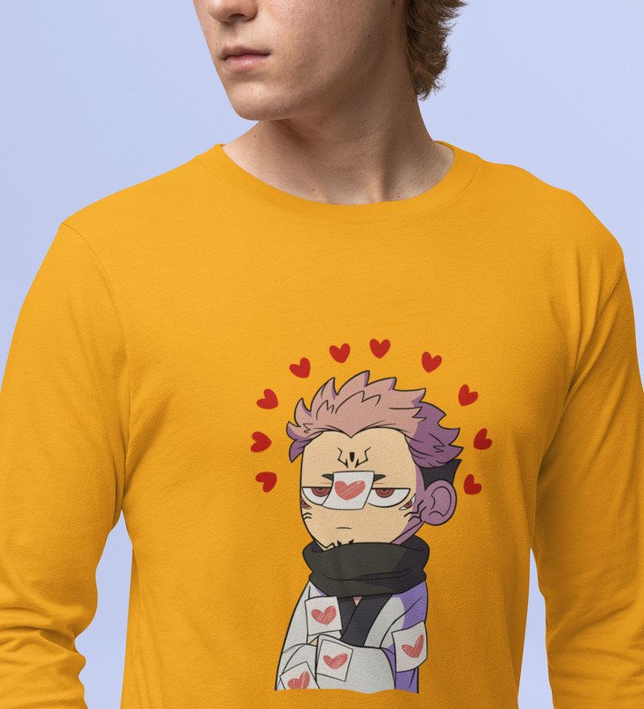Evil Eye Itadori Cotton Yellow Printed Full Sleeves Tshirt For Mens and Boys