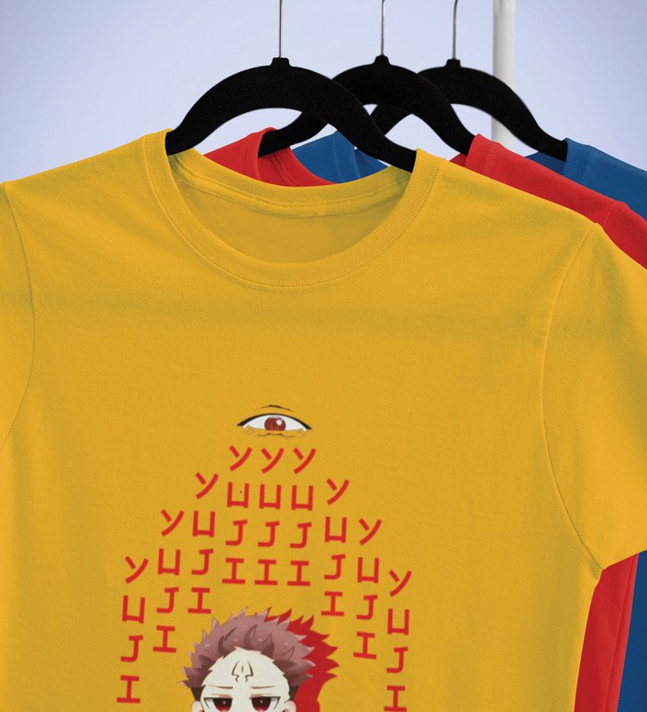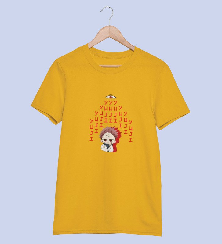 Evil Eye Itadori Cotton Yellow Printed Tshirt For Mens and Boys