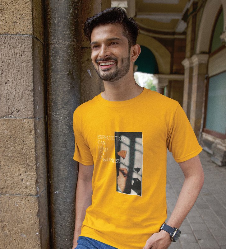 Expectation Hurts,Bold and Beyond: Yellow Front Printed Round Neck T-Shirt - Men's Fashion Forward