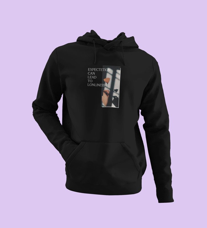 Expectation Hurts,Bold and Beyond:Black Front Printed Round Neck Hoodies - Men's Fashion Forward