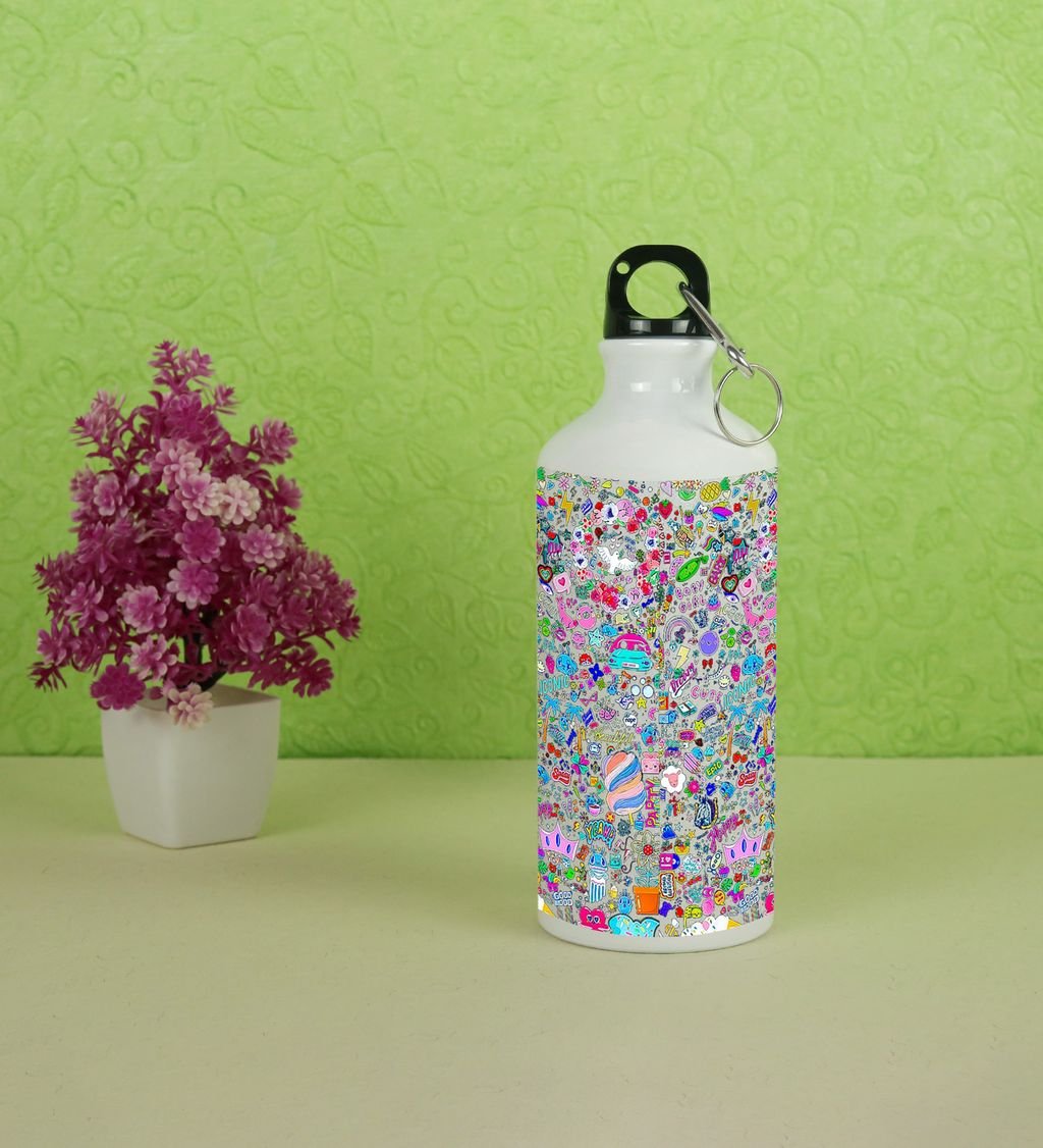 Express YouSARAf with Vibrant Shiny Color Graffiti on Aluminium Water Bottle 600ml