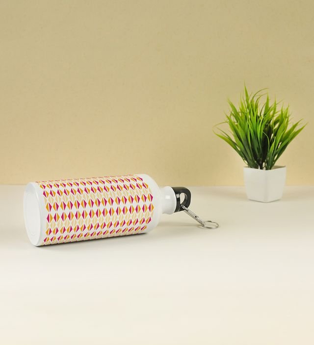 Exquisite Tribal Triangles Grid with Mosaic and Line Details Printed Aluminium Water Bottle 600ml