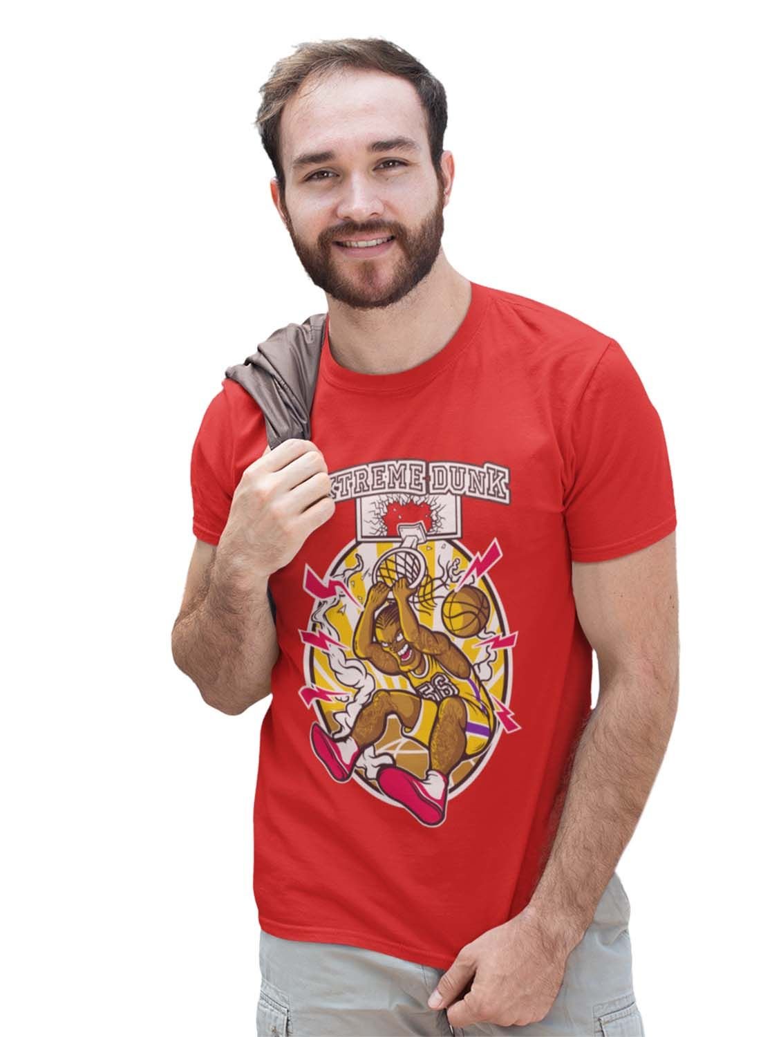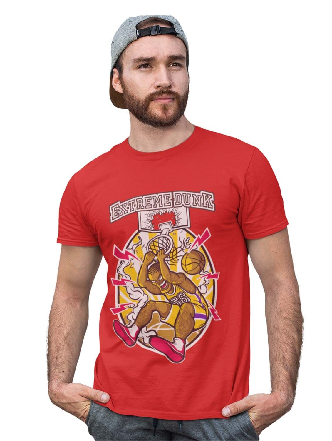 The Dunk Red Round Neck Cotton Half Sleeved T-Shirt with Printed Graphics