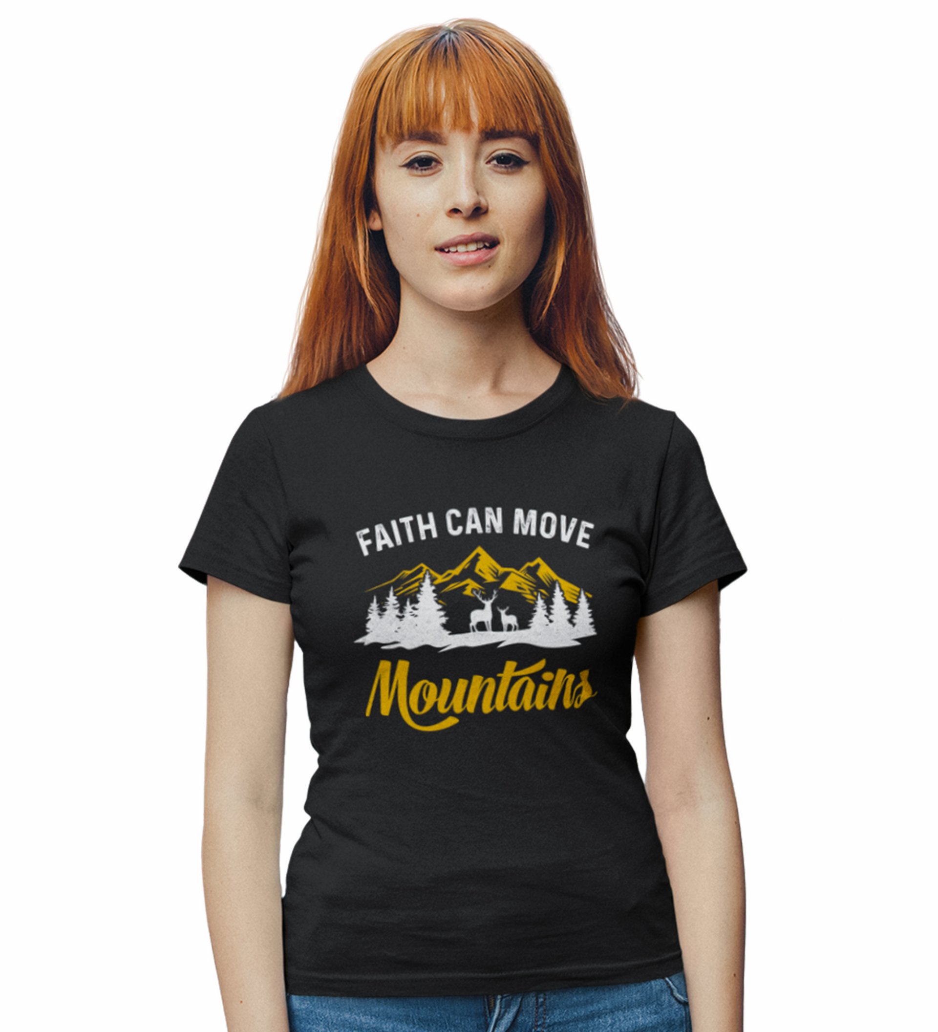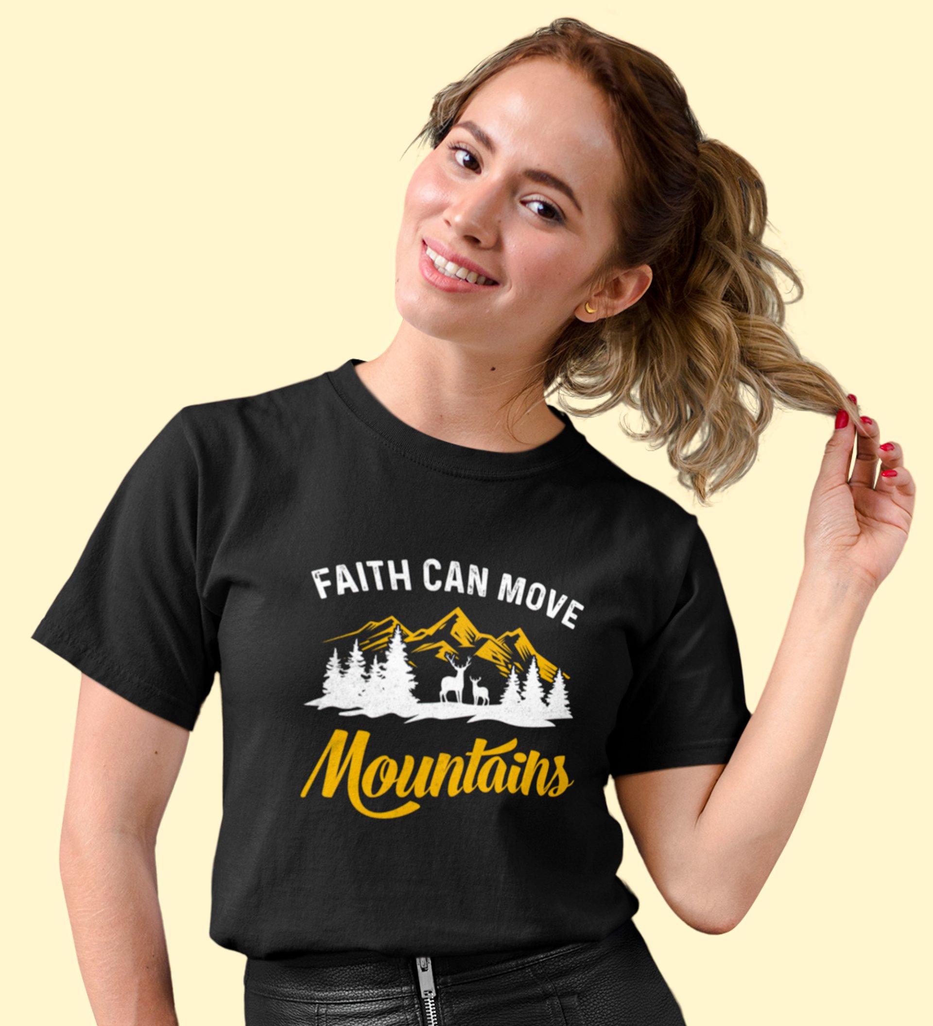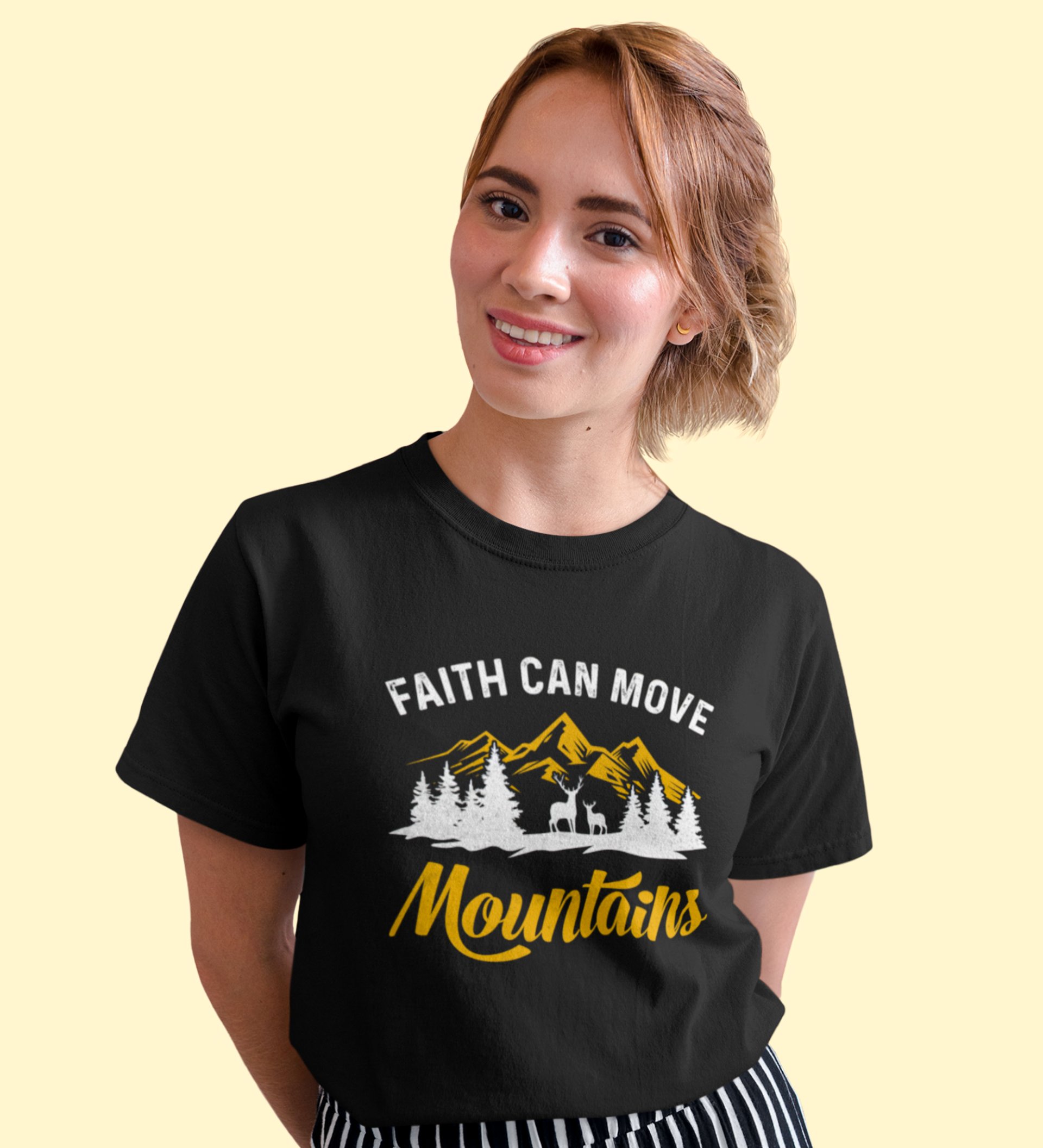 HopOfferPower Of Faith Black Round Neck Cotton Half Sleeved Women's T-Shirt with Printed Graphics