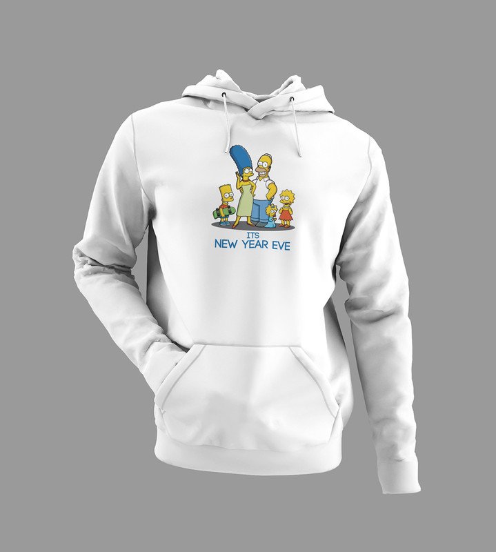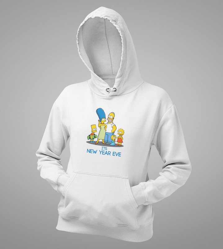 Family's New Year, White Graphic Printed Hoodies For Mens Boys