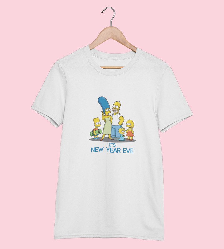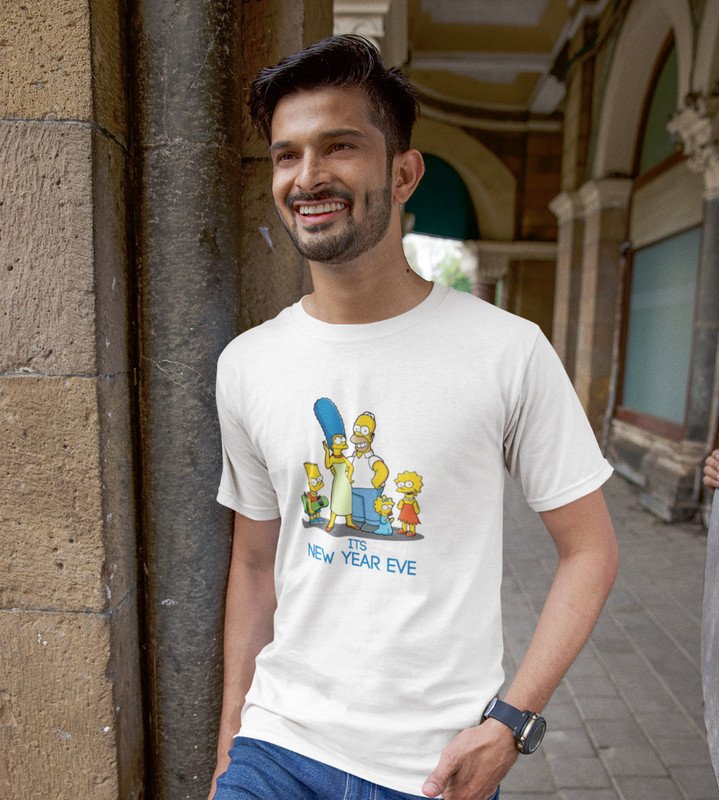 Family's New Year White Graphic Printed T-shirt For Mens Boys