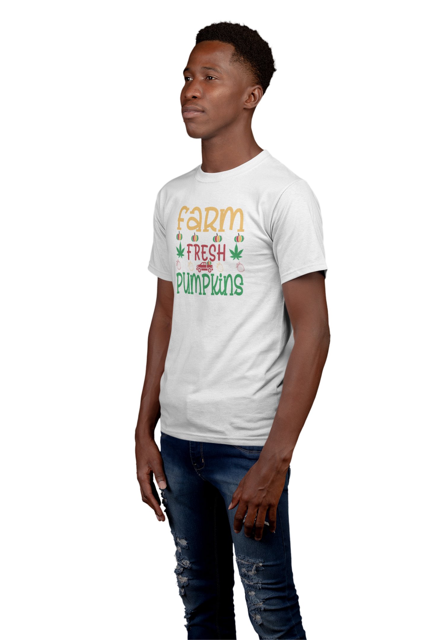 Farm fresh pumpkins (BG Yellow, Red ,Green ) White T) - Spookily Awesome Halloween Tshirts