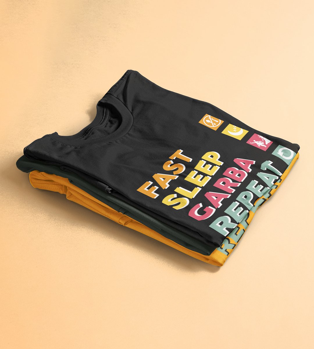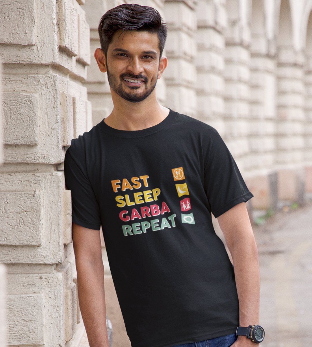 Fast sleep garba repeat printed unisex adults round neck cotton half-sleeve black tshirt specially for Navratri festival/ Durga puja