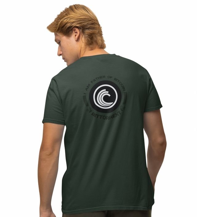 Father Of Bitcoin Wings Green Round Neck Cotton Half Sleeved Men's T Shirt with Printed Graphics