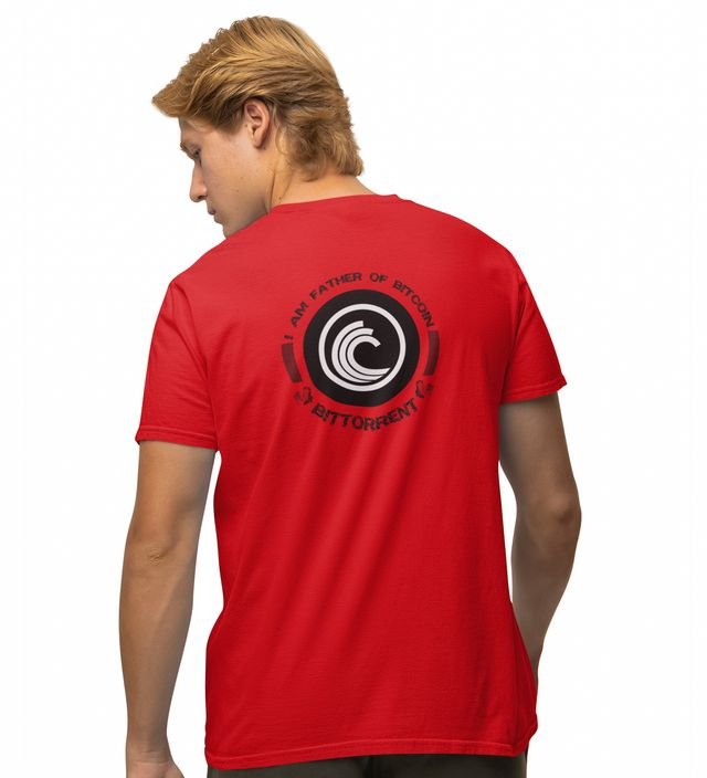 Father Of Bitcoin Wings Red Round Neck Cotton Half Sleeved Men's T Shirt with Printed Graphics