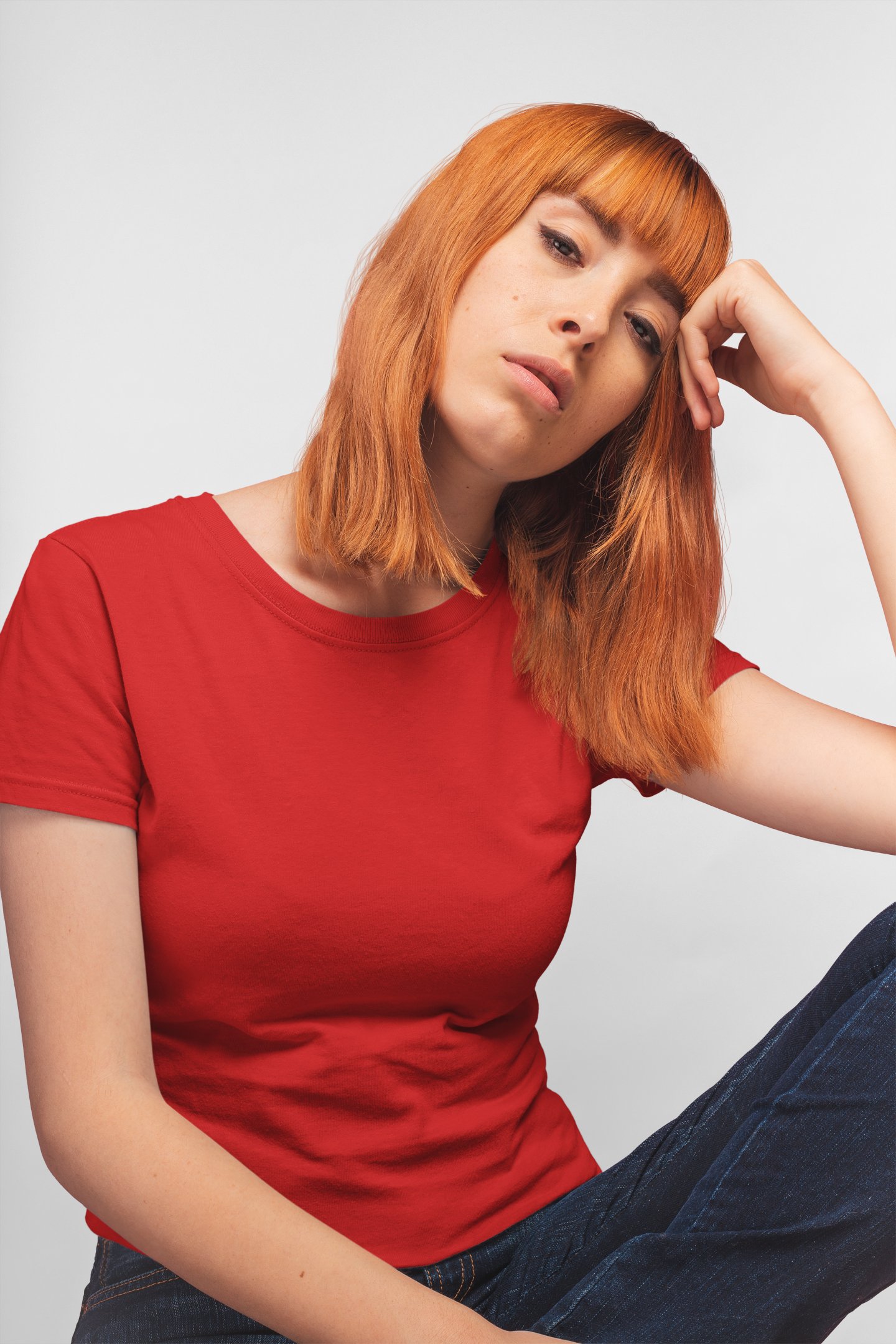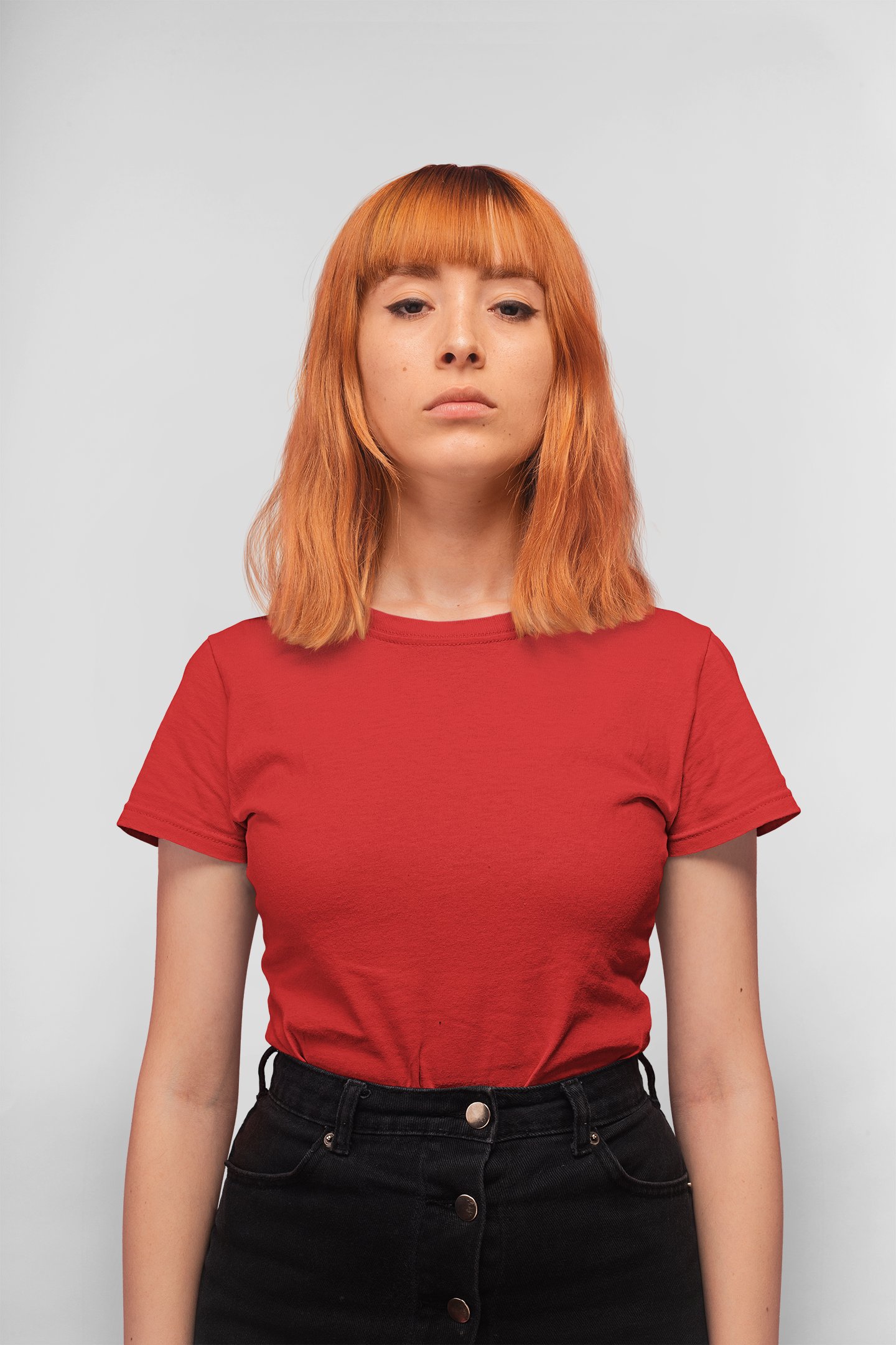 Female red colour solid tee