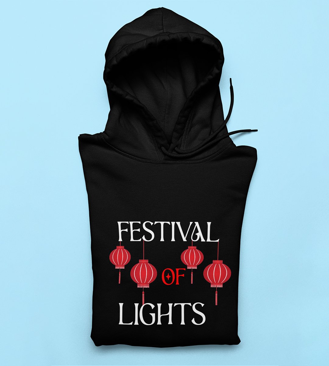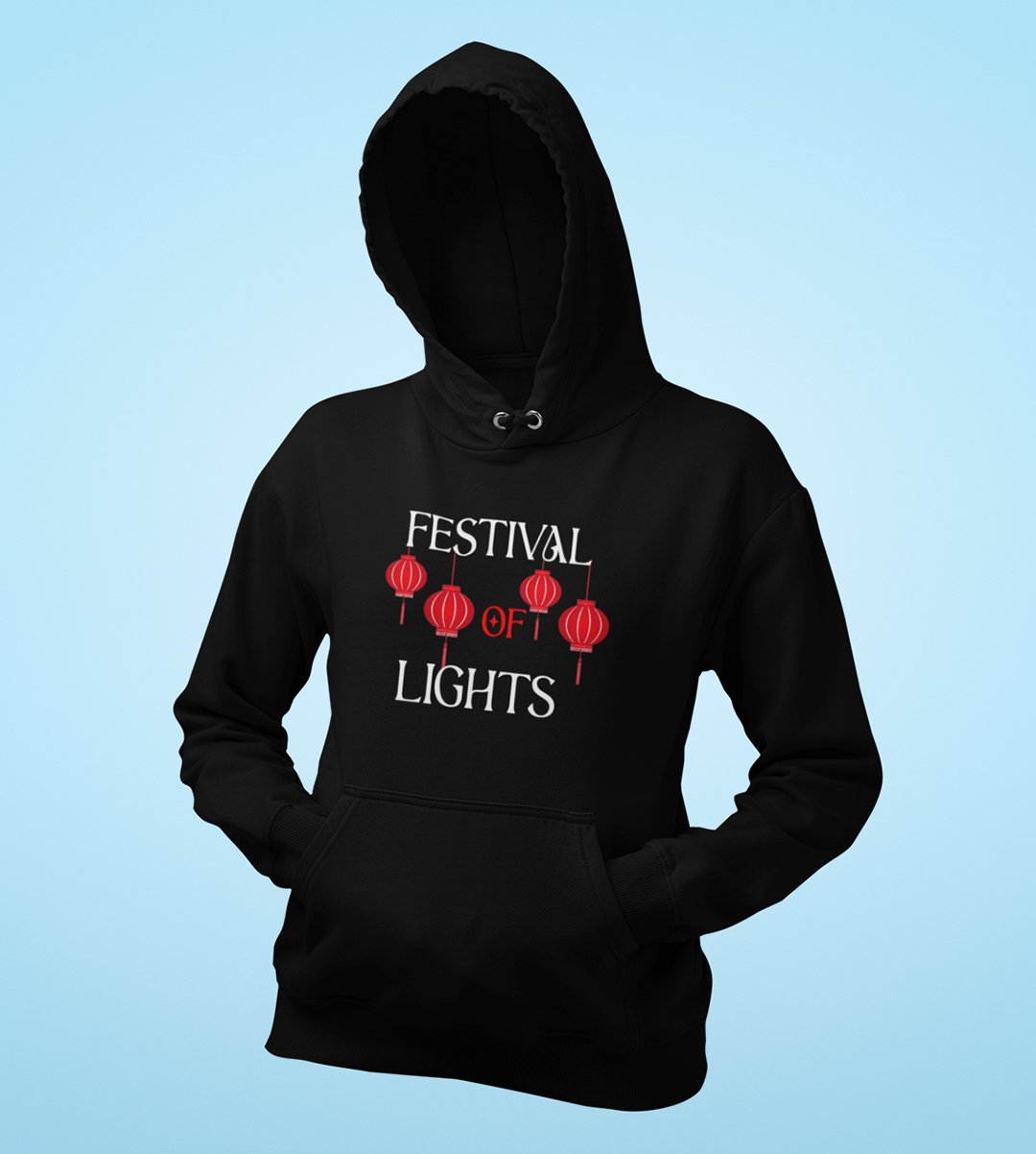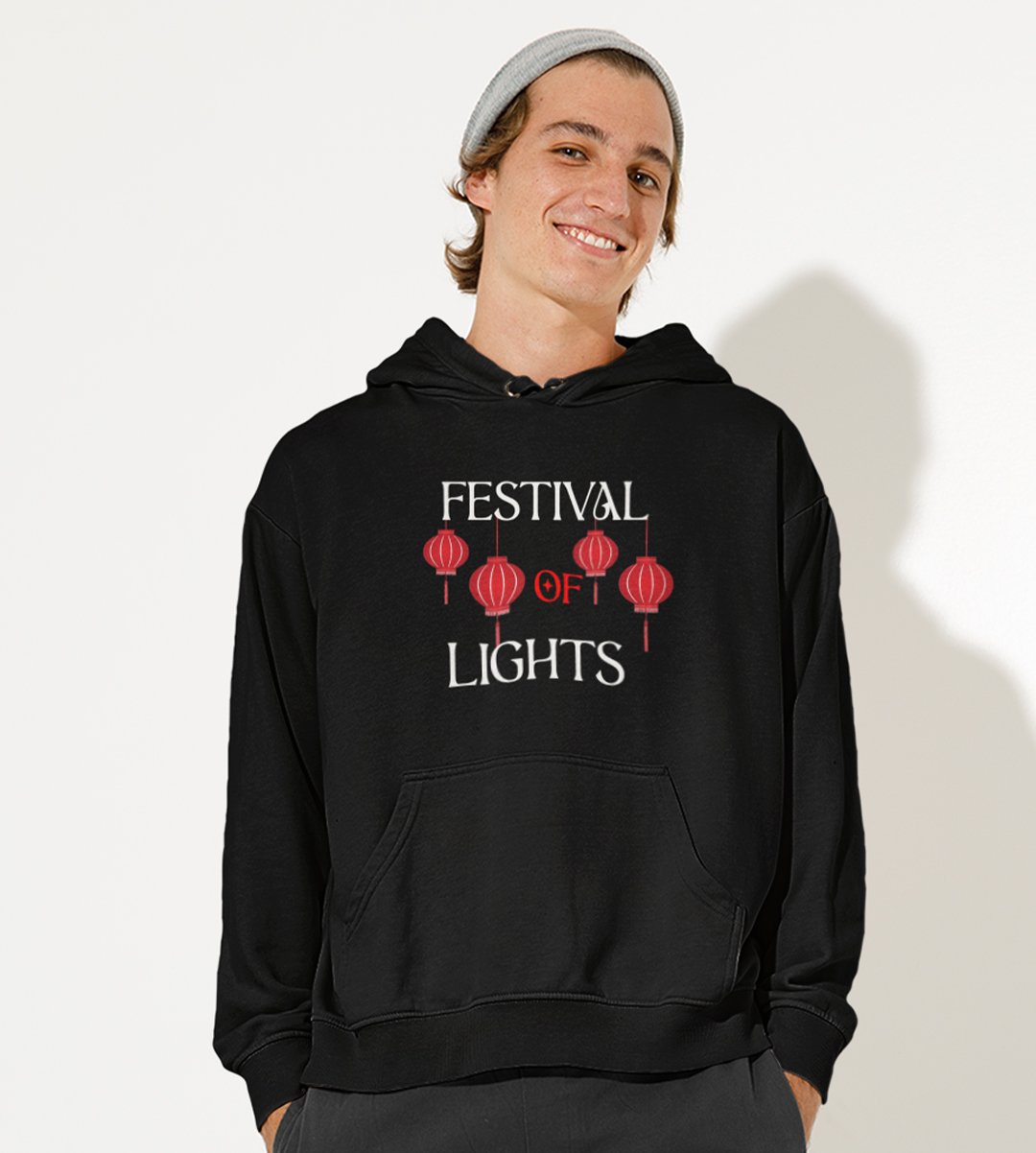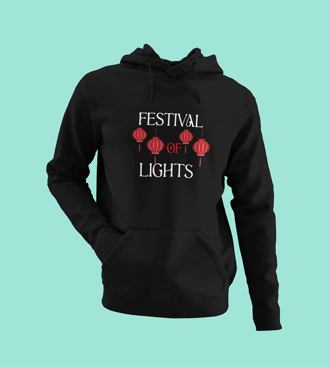 Festival of lights text printed diwali themed black Hoodie specially for diwali festival
