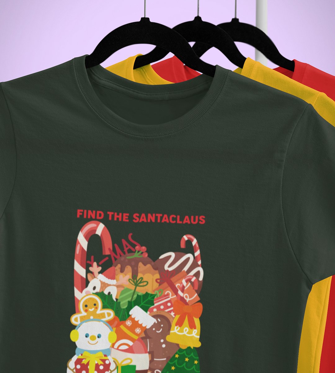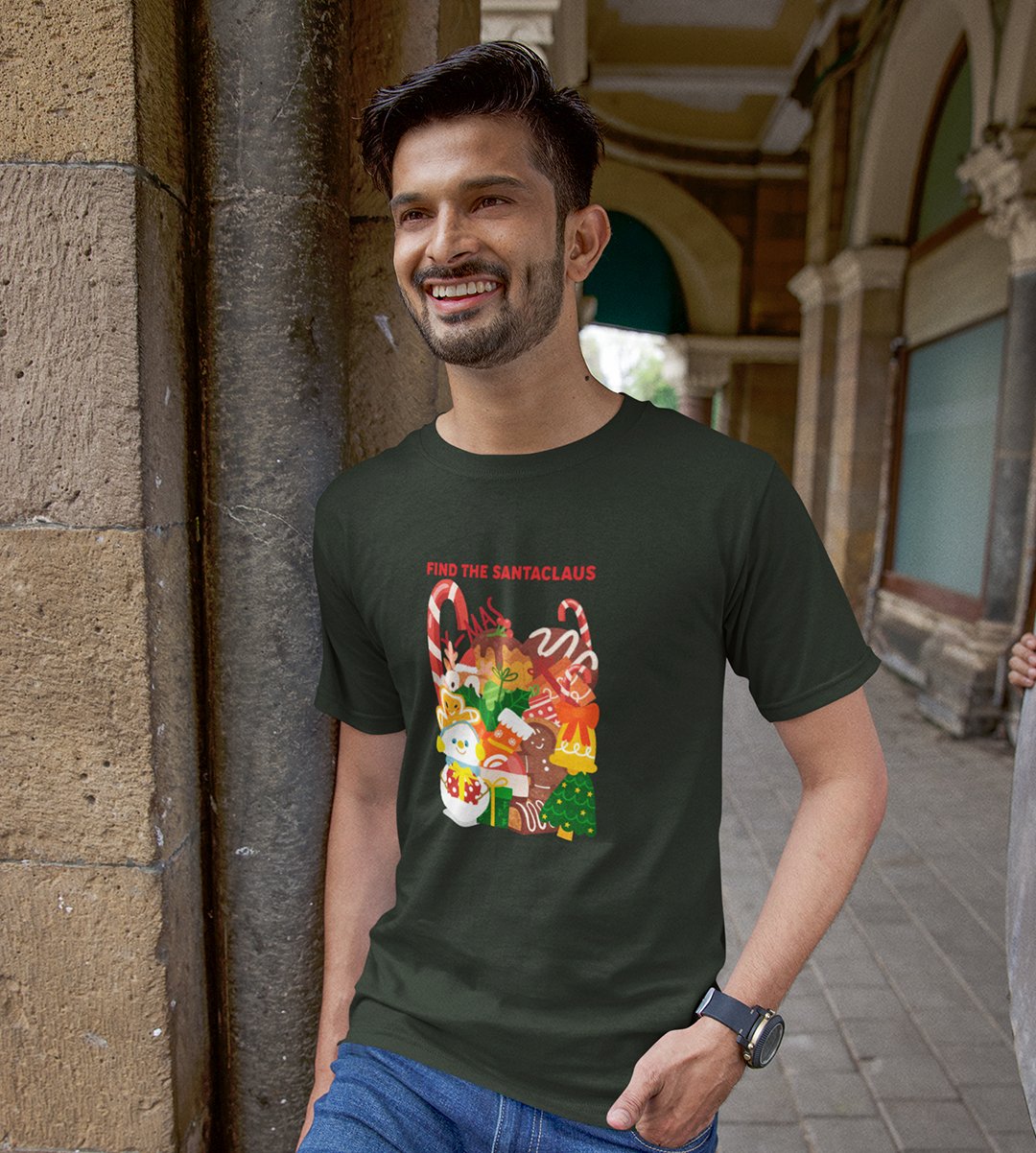 Find The Santa : Beautifully Crafted T-shirt (Green) Perfect Gift For Kids