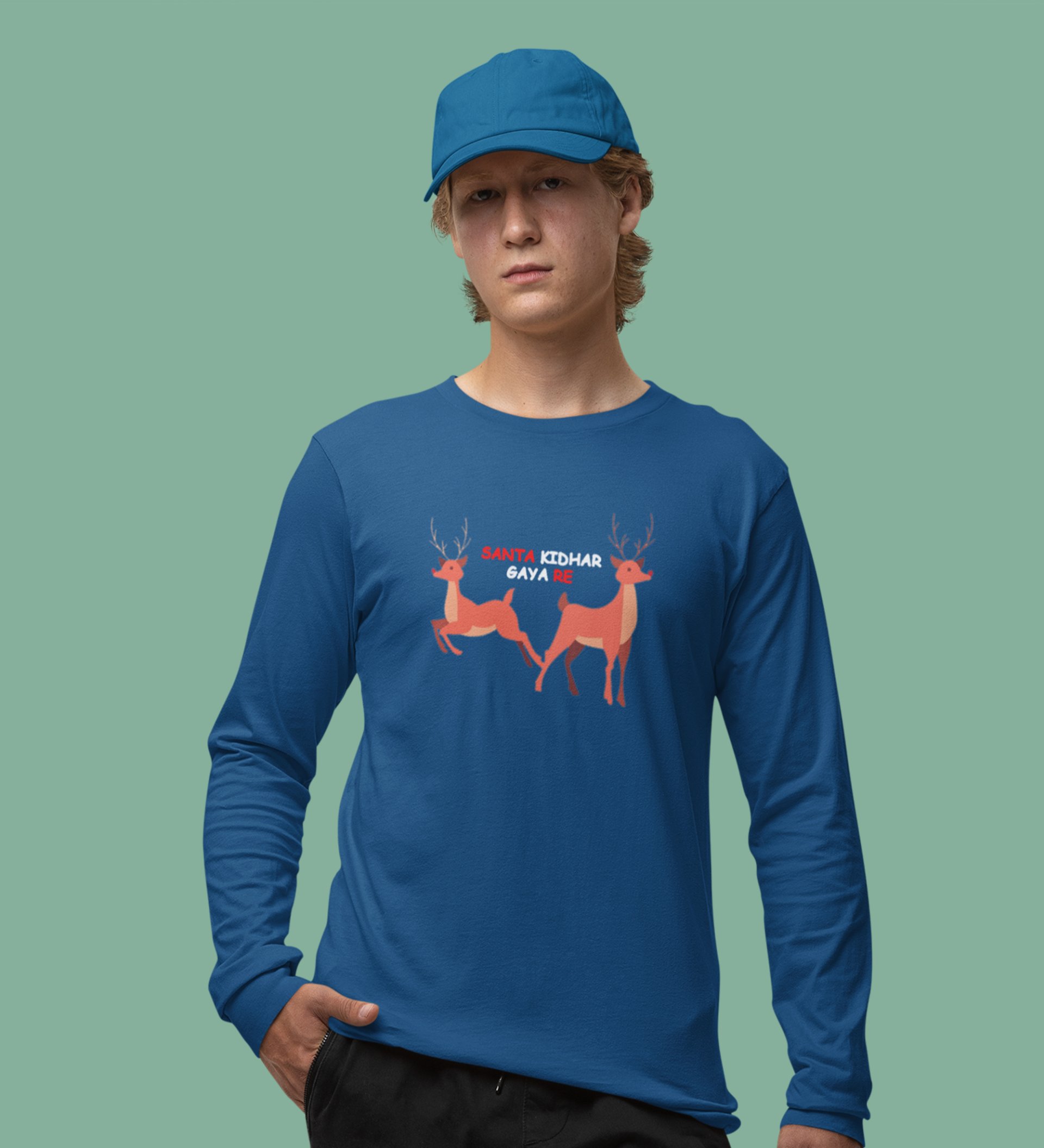 Find The Santa: Cute DesignerFull Sleeve T-shirt For Kids Blue Best Gift For Kids