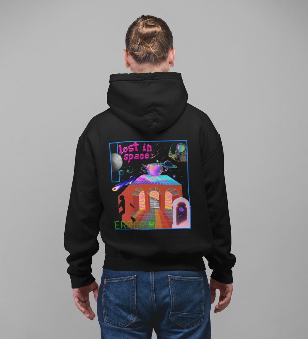 Finding Comfort Lost in Space Black Cotton Printed Hoodies For Men