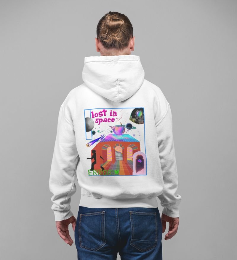 Finding Comfort Lost in Space White Cotton Printed Hoodies For Men