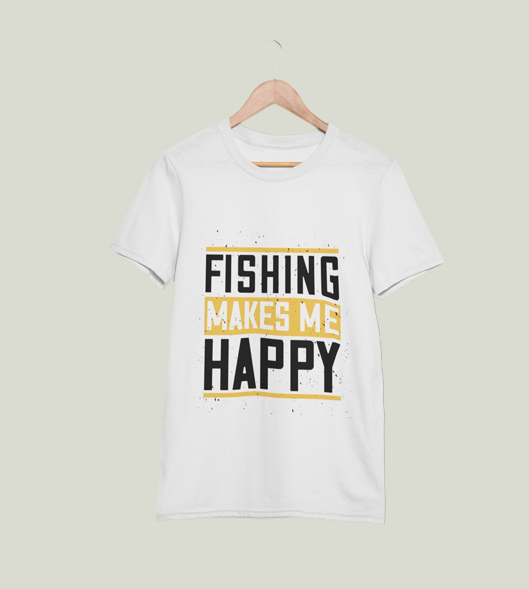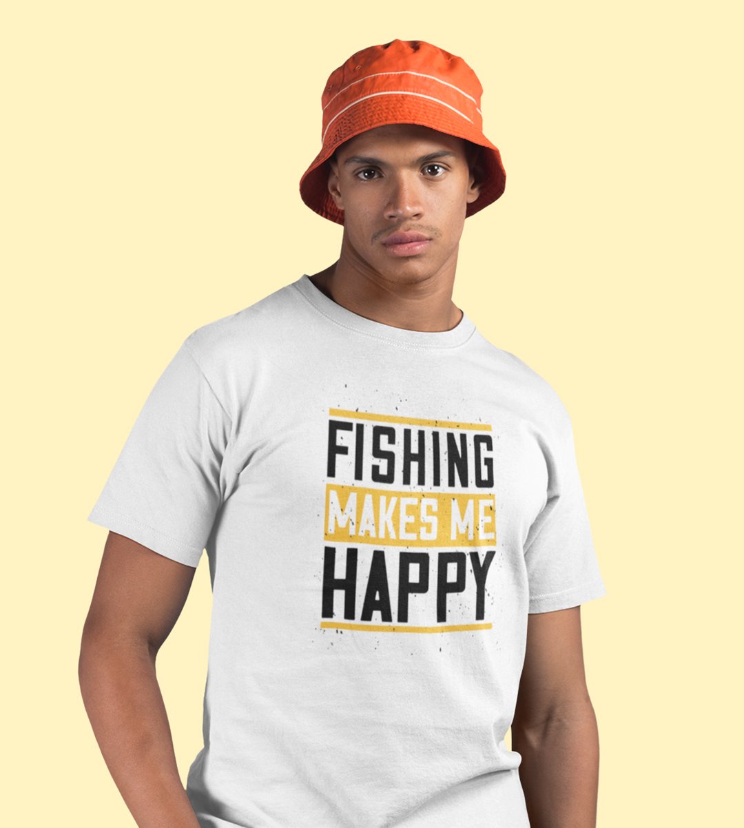 Fishing makes me happy Illustration art - Printed Tees for men - super comfy - designed for fun and creative atmosphere around you - youth oriented design