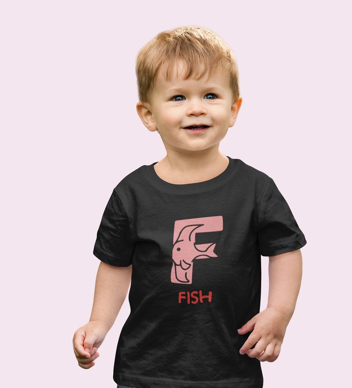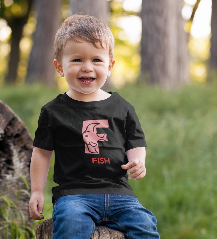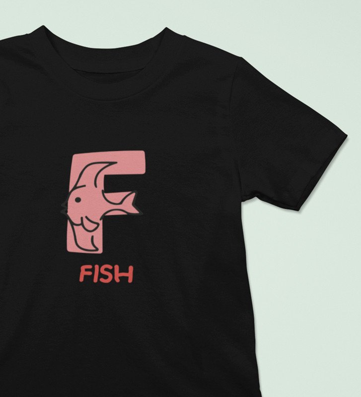Fishy Fish, Printed Cotton Tshirt (black) for Boys
