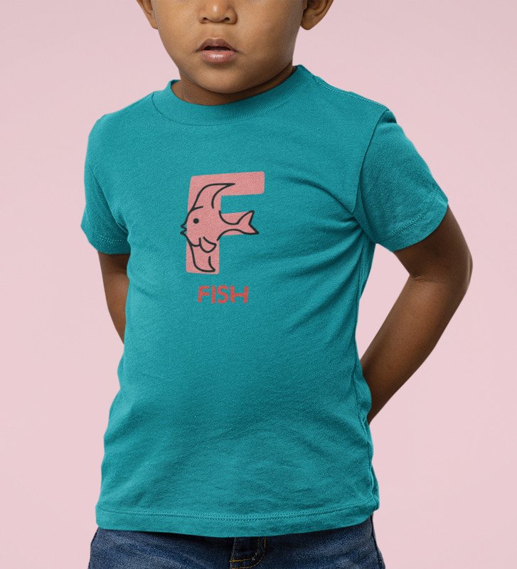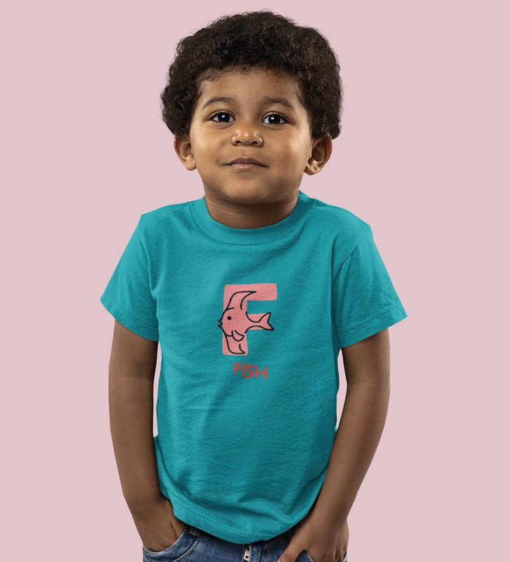 Fishy Fish, Printed Cotton Tshirt (Teal) for Boys