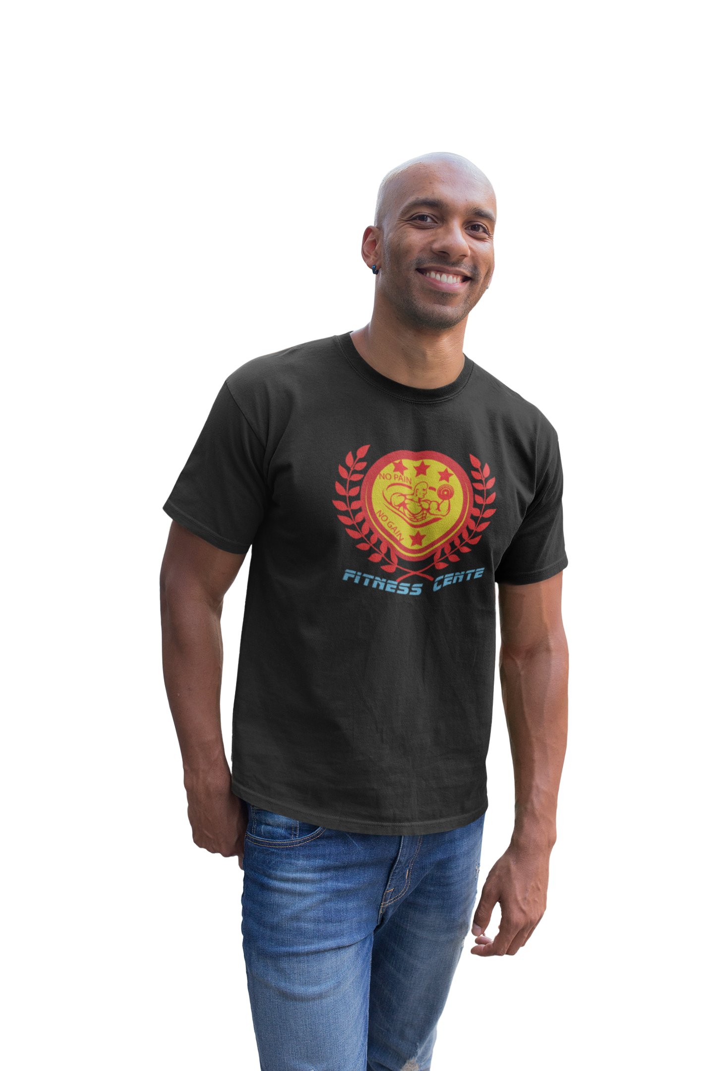 Fitness Center, No Pain, No Gain, Red Leaves Inside The Circle, Round Neck Gym Tshirt (Black Tshirt) - Clothes for Gym Lovers - Foremost Gifting Material for Your Friends and Close Ones