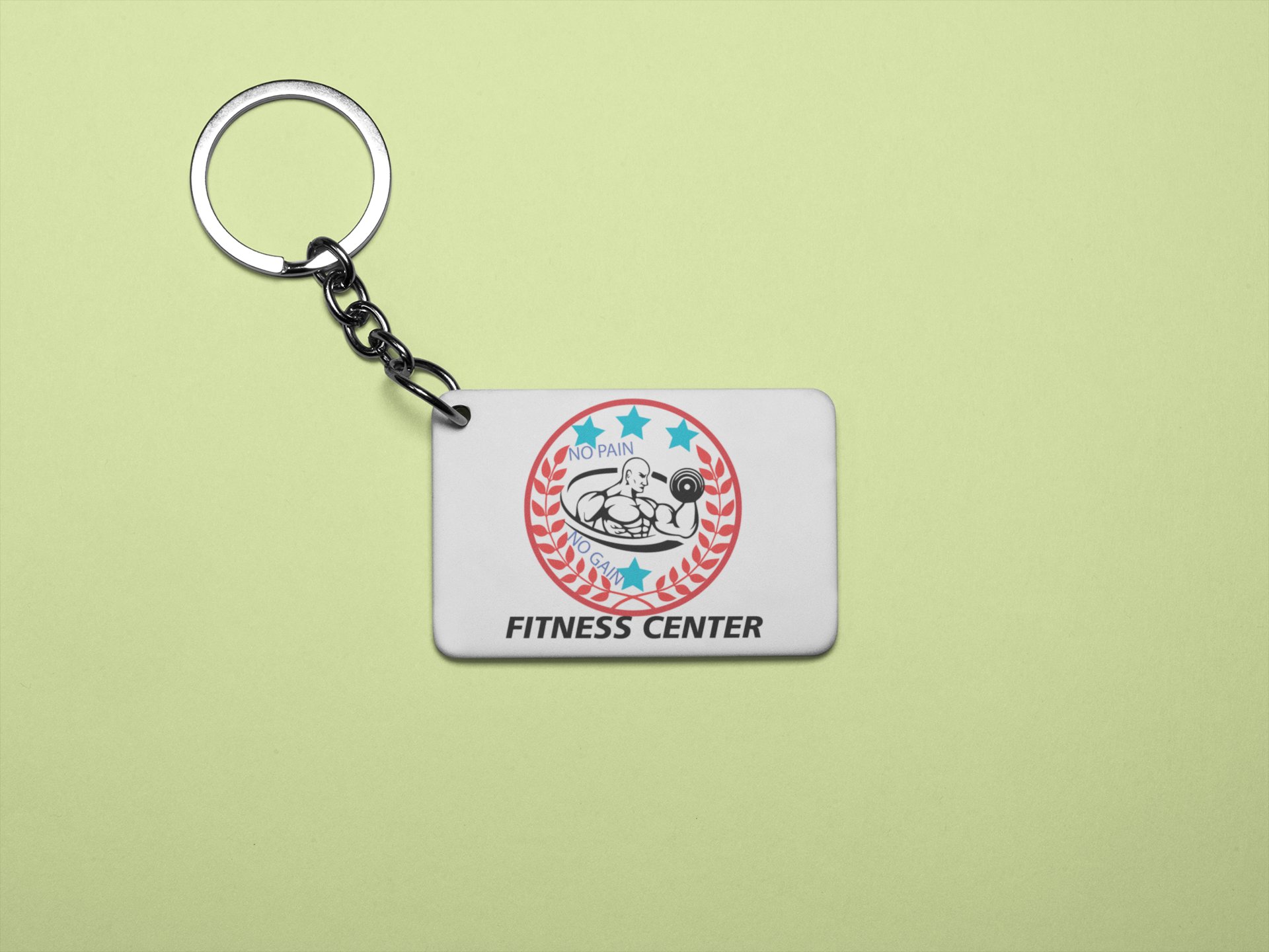 Fitness Center, Red Leaves Inside The Circle - Printed Keychains for gym lovers(Pack of 2)