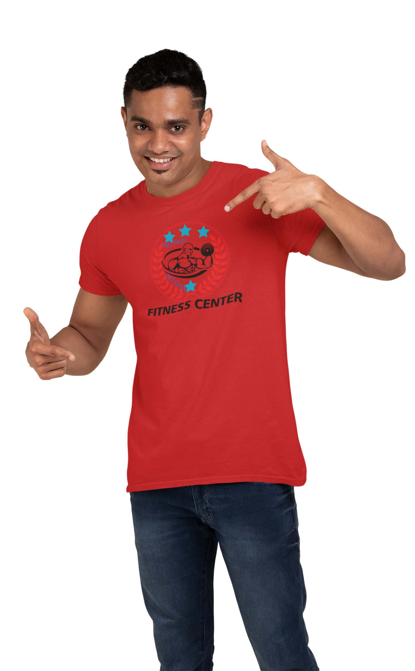 Fitness Center, Red Leaves Inside The Circle, Round Neck Gym Tshirt (Red Tshirt) - Clothes for Gym Lovers - Suitable for Gym Going Person - Foremost Gifting Material for Your Friends and Close Ones