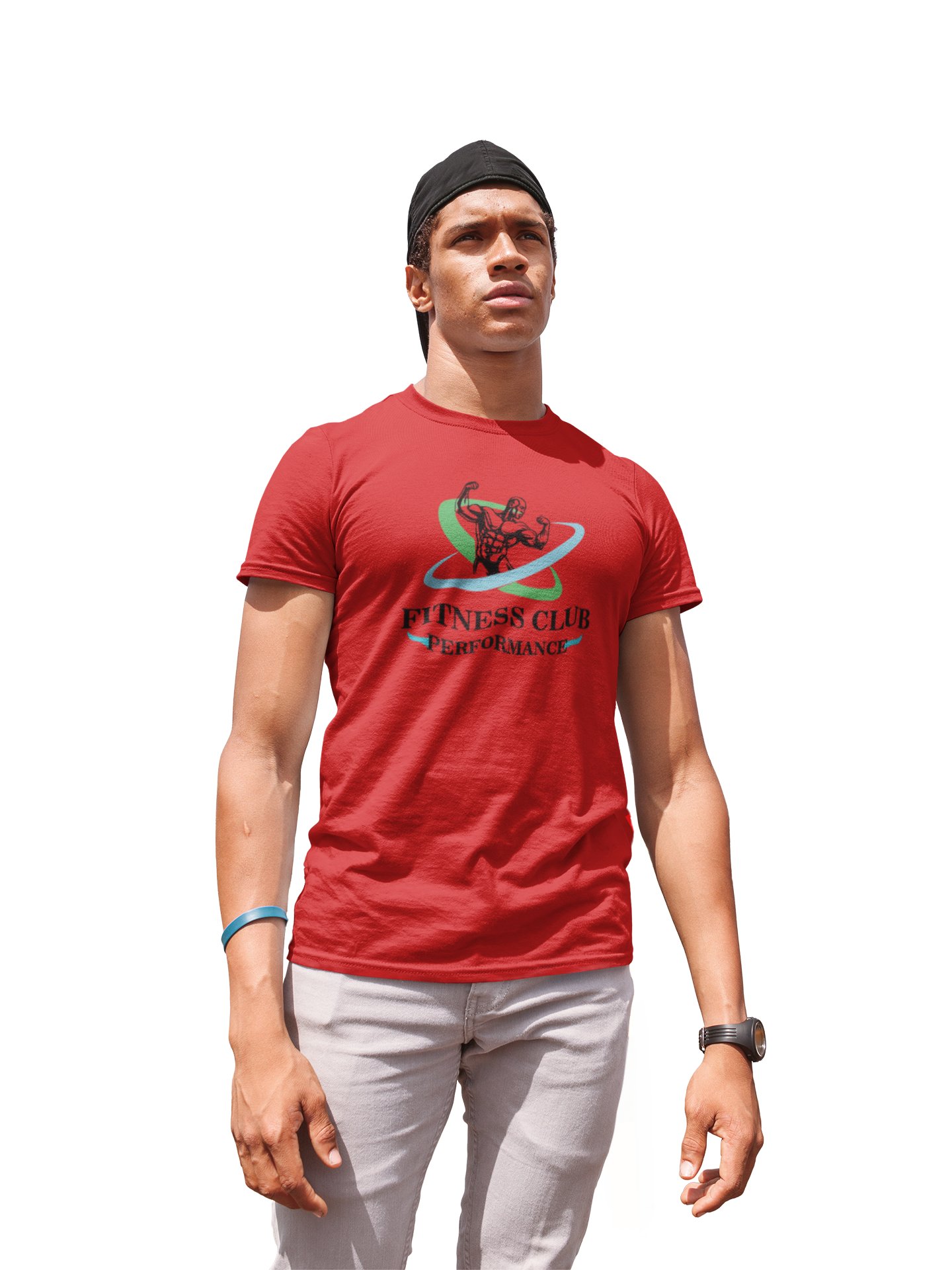 Fitness Club, Performance, (BG Blue, Green and Black), Round Neck Gym Tshirt, (Red Tshirt) - Clothes for Gym Lovers - Suitable for Gym Going Person - Foremost Gifting Material for Your Friends and Close Ones