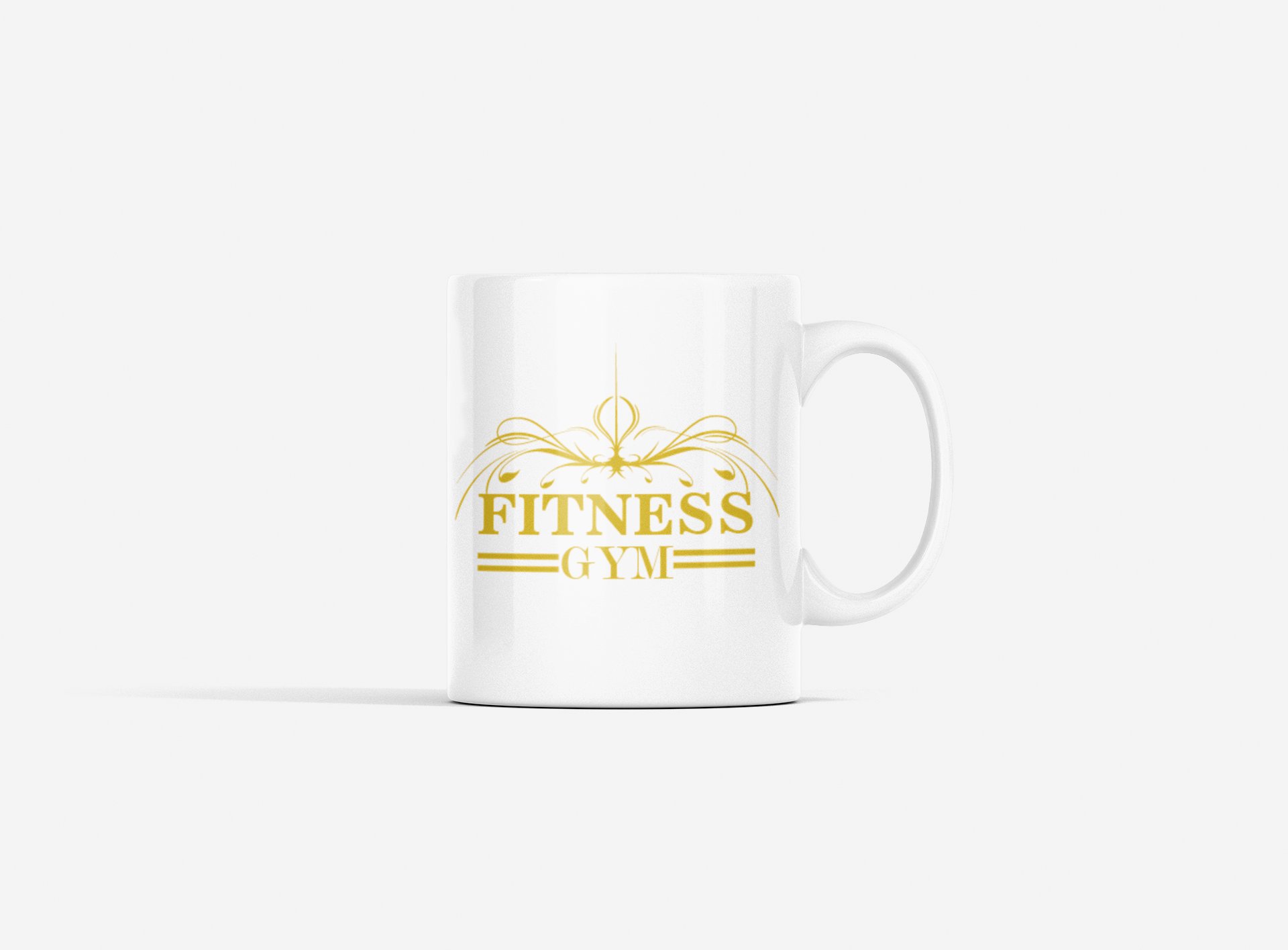Fitness Gym, 2 Dashes (BG Golden) - gym themed printed ceramic white coffee and tea mugs/ cups for gym lovers